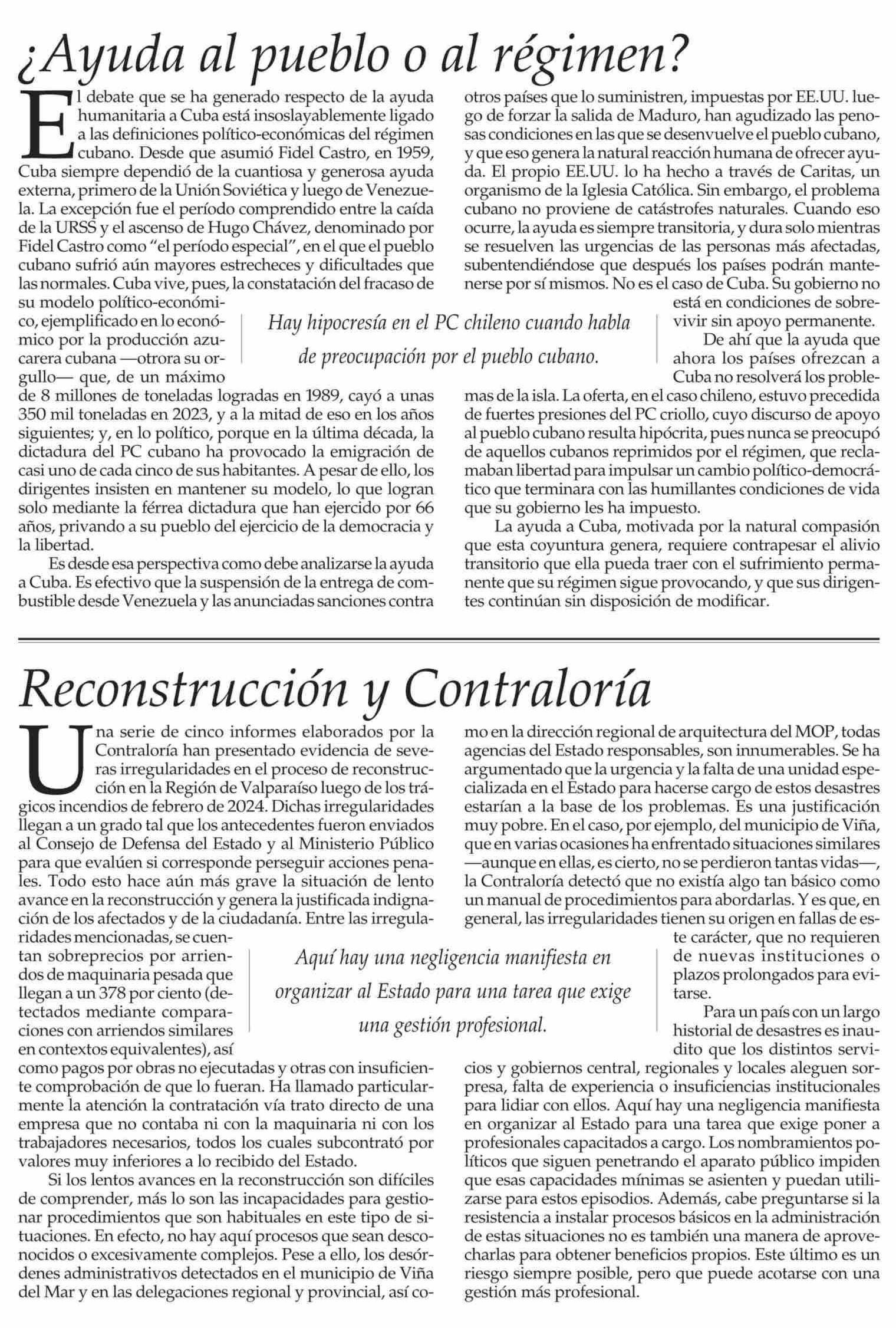 Editorial: ¿Ayuda al pueblo o al régimen?