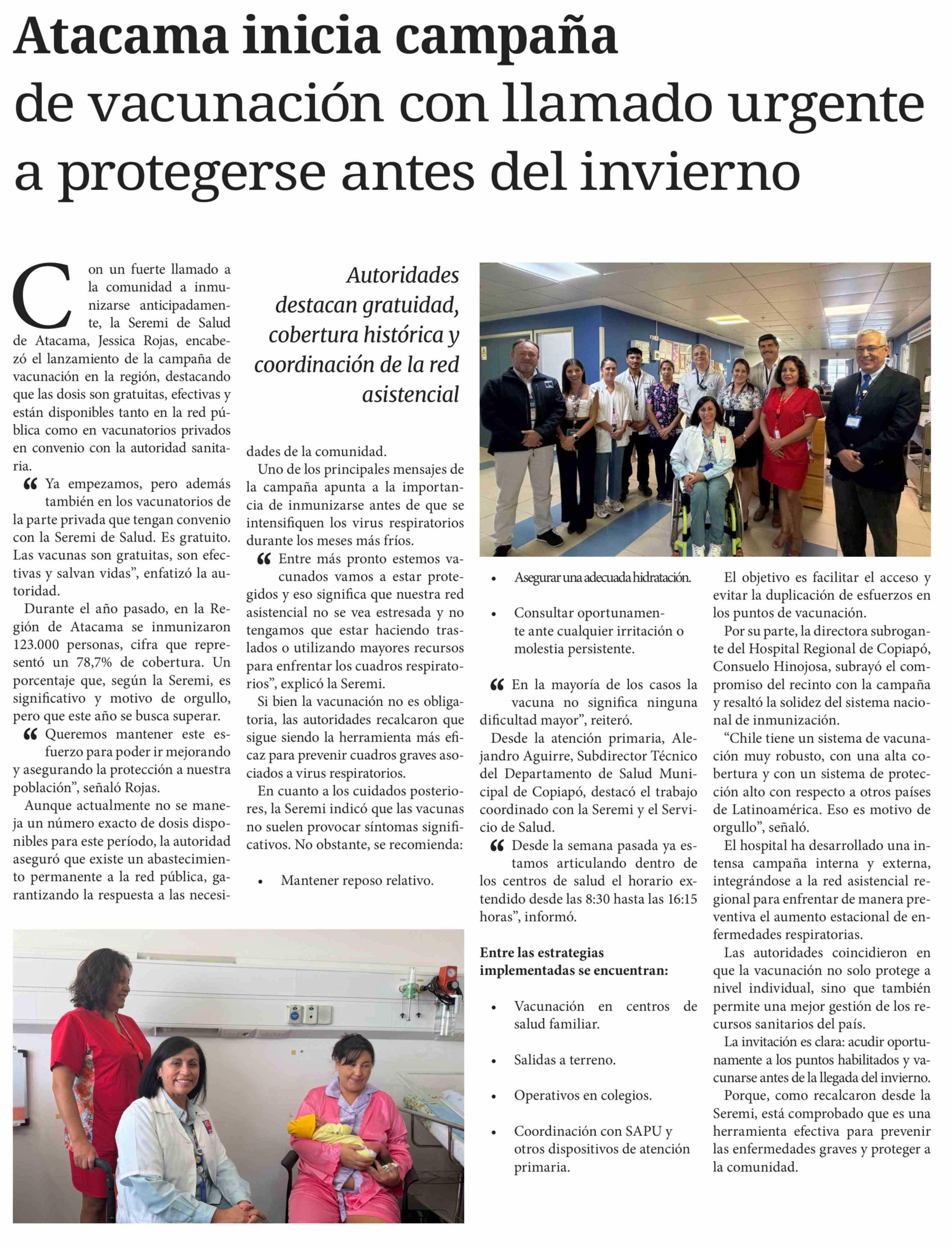 Título: Atacama inicia campaña de vacunación con llamado urgente a protegerse antes del invierno
