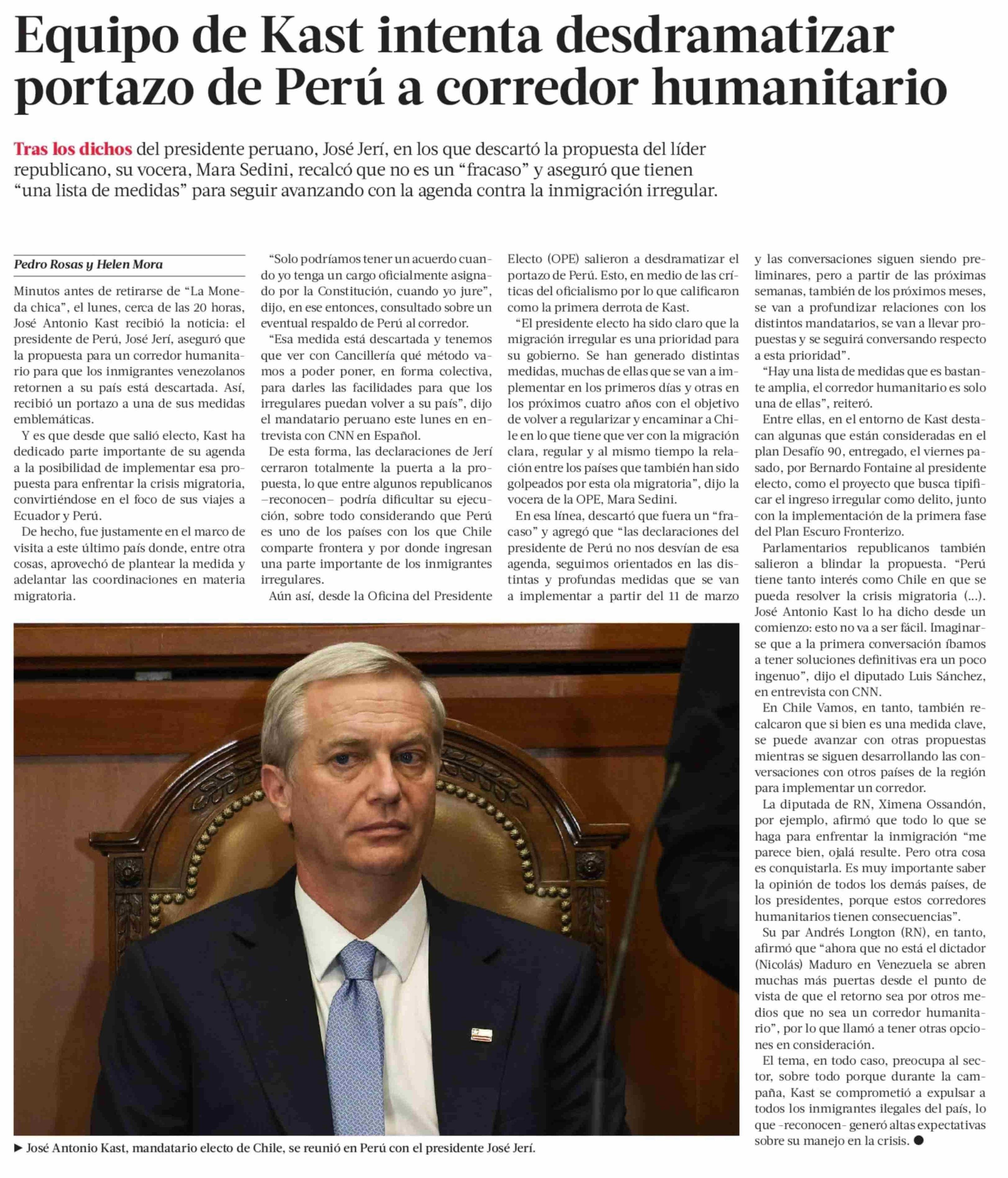Equipo de Kast intenta desdramatizar portazo de Perú a corredor humanitario