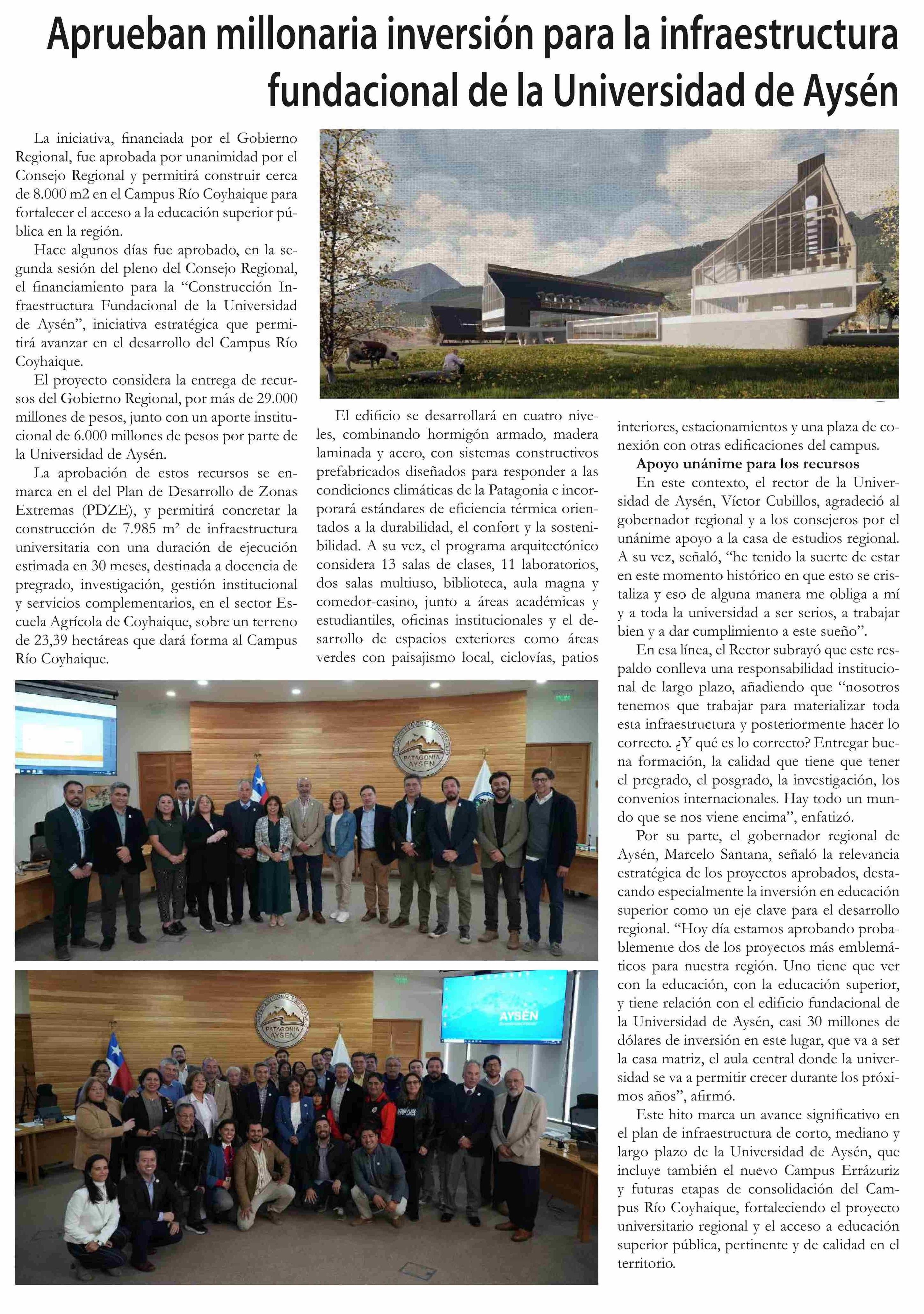 Aprueban millonaria inversión para la infraestructura fundacional de la Universidad de Aysén