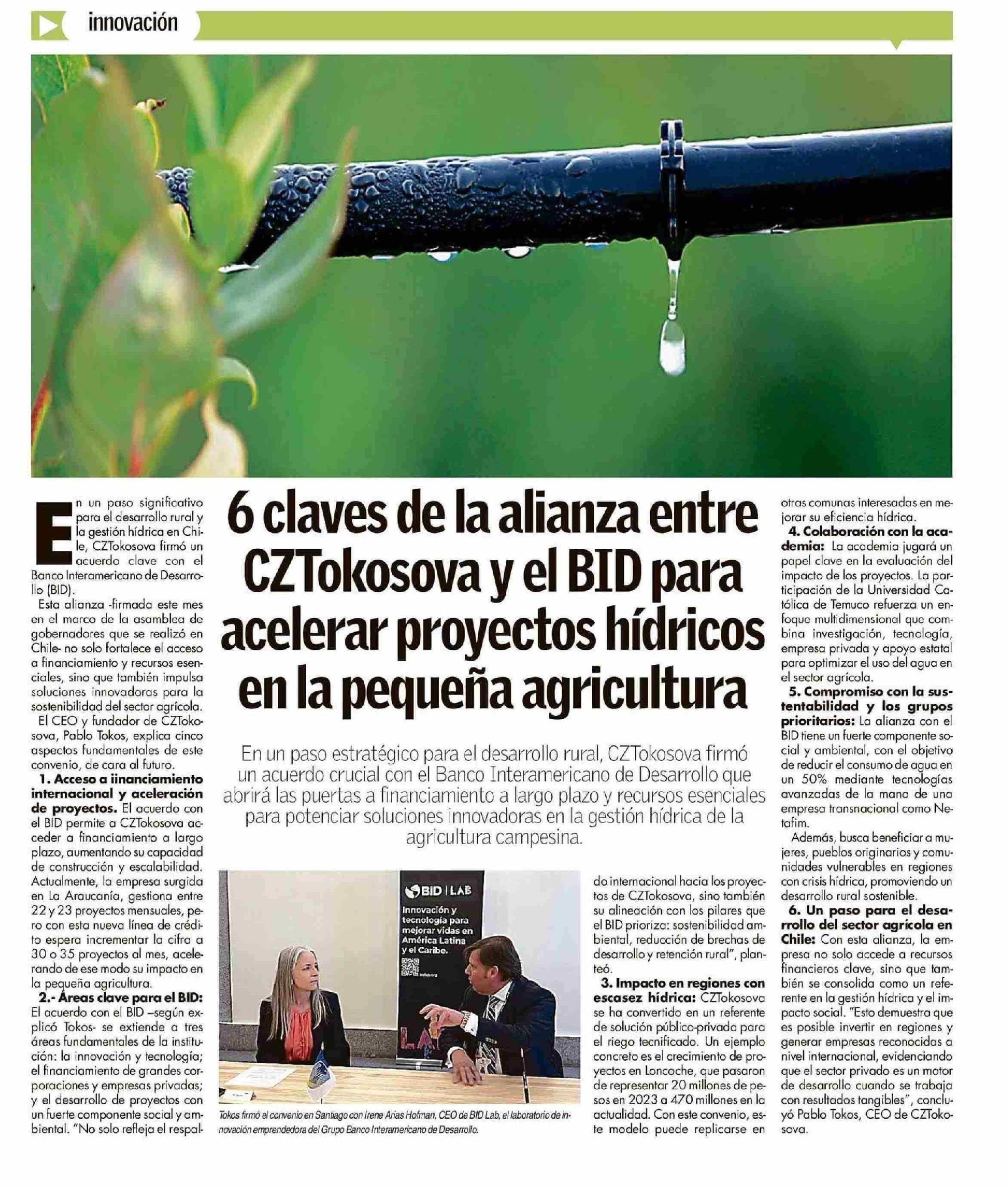 6 claves de la alianza entre CZTokosova y el BID para acelerar proyectos hídricos en la pequeña agricultura
