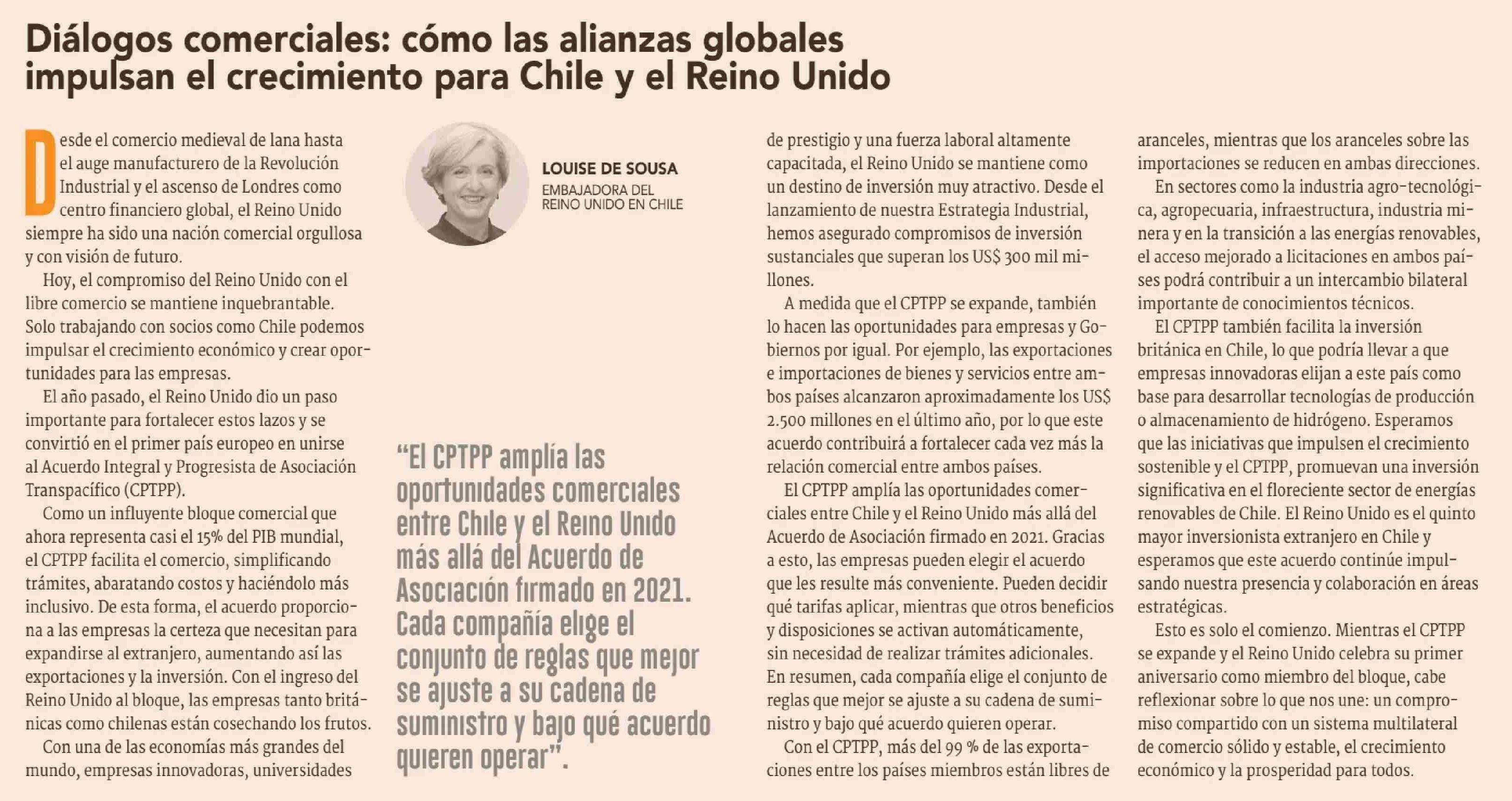 Columnas de Opinión: Diálogos comerciales: cómo las alianzas globales impulsan el crecimiento para Chile y el Reino Unido