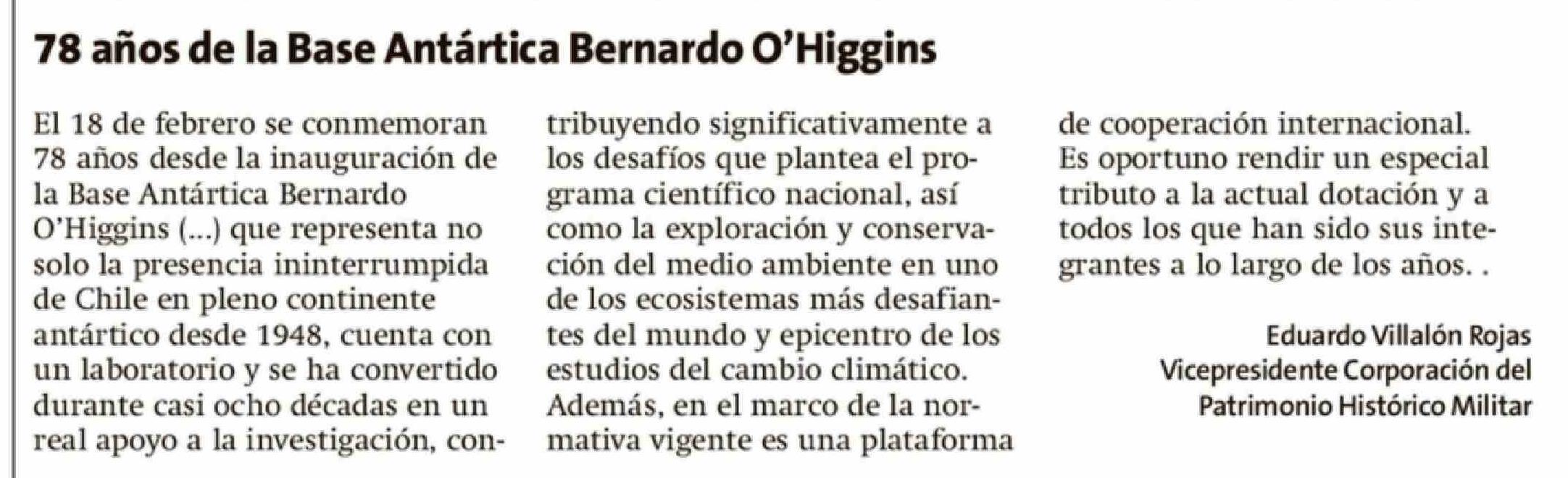 Cartas: 78 Años de la Base Antártica Bernardo O'Higgins