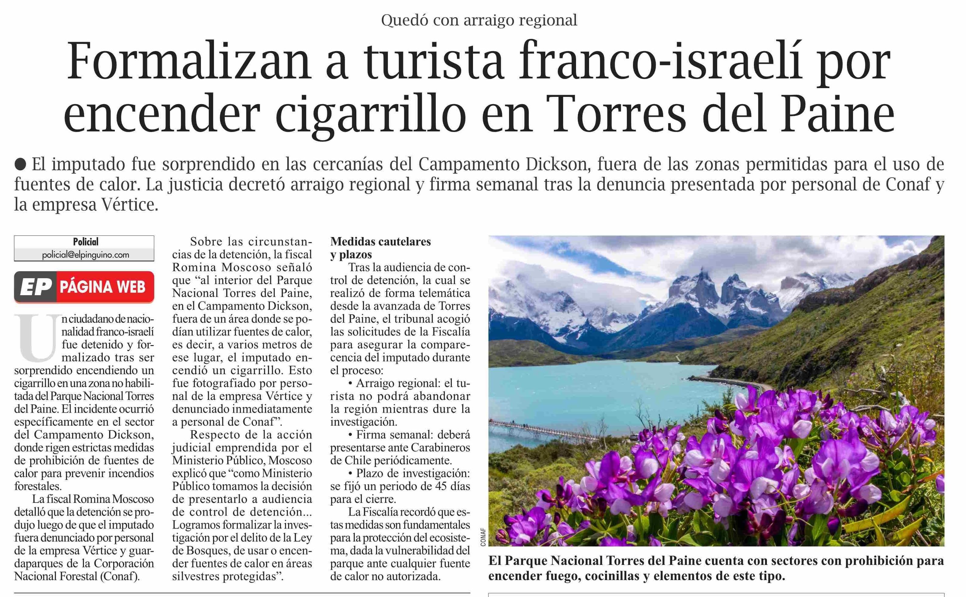 Formalizan a turista franco-israelí por encender cigarrillo en Torres del Paine