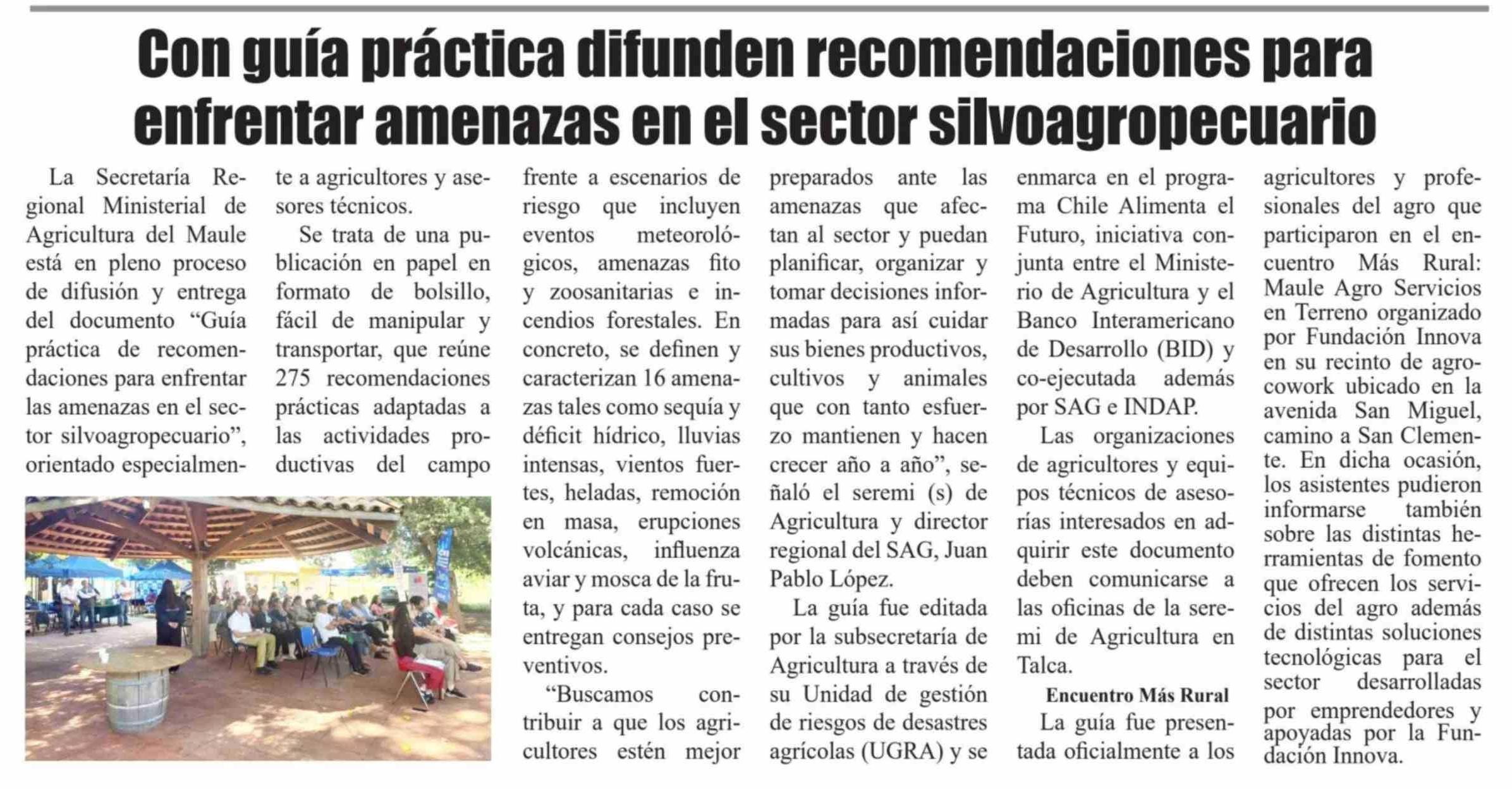 Con guía práctica difunden recomendaciones para enfrentar amenazas en el sector silvoagropecuario