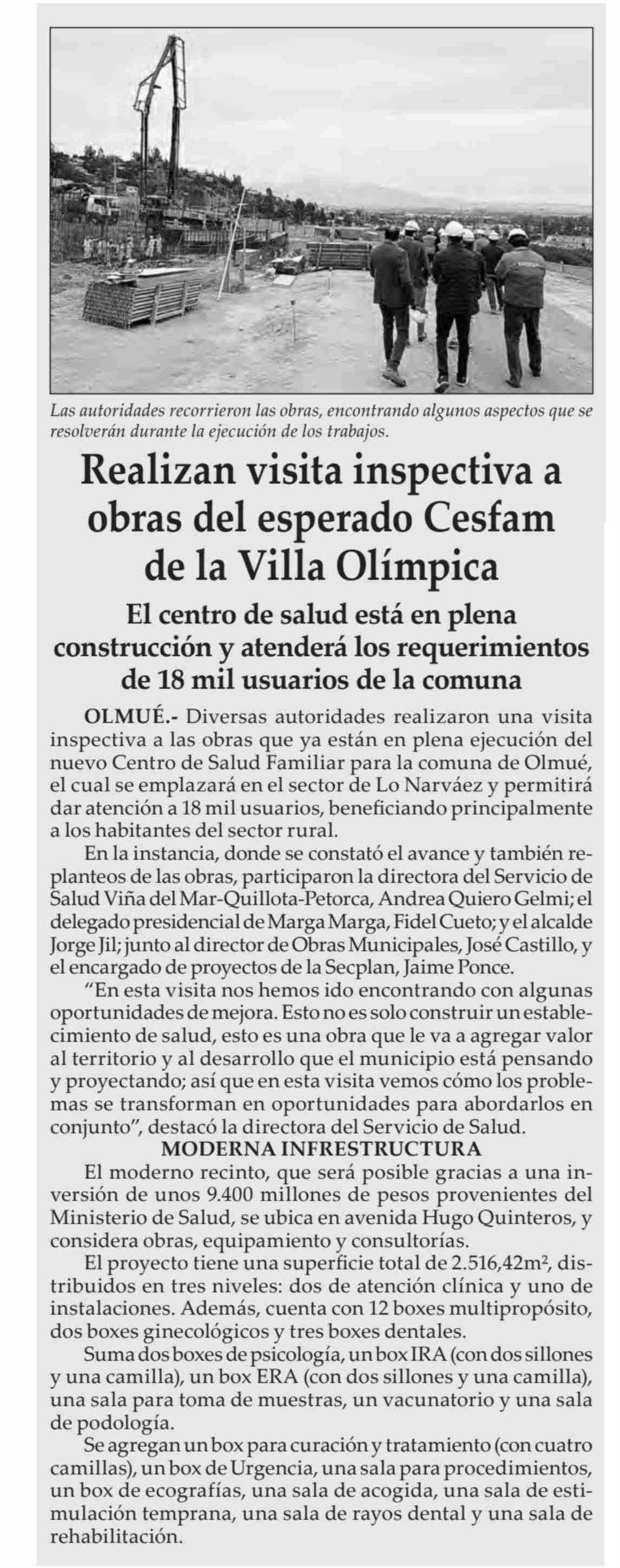 Realizan visita inspectiva a obras del esperado Cesfam de la Villa Olímpica