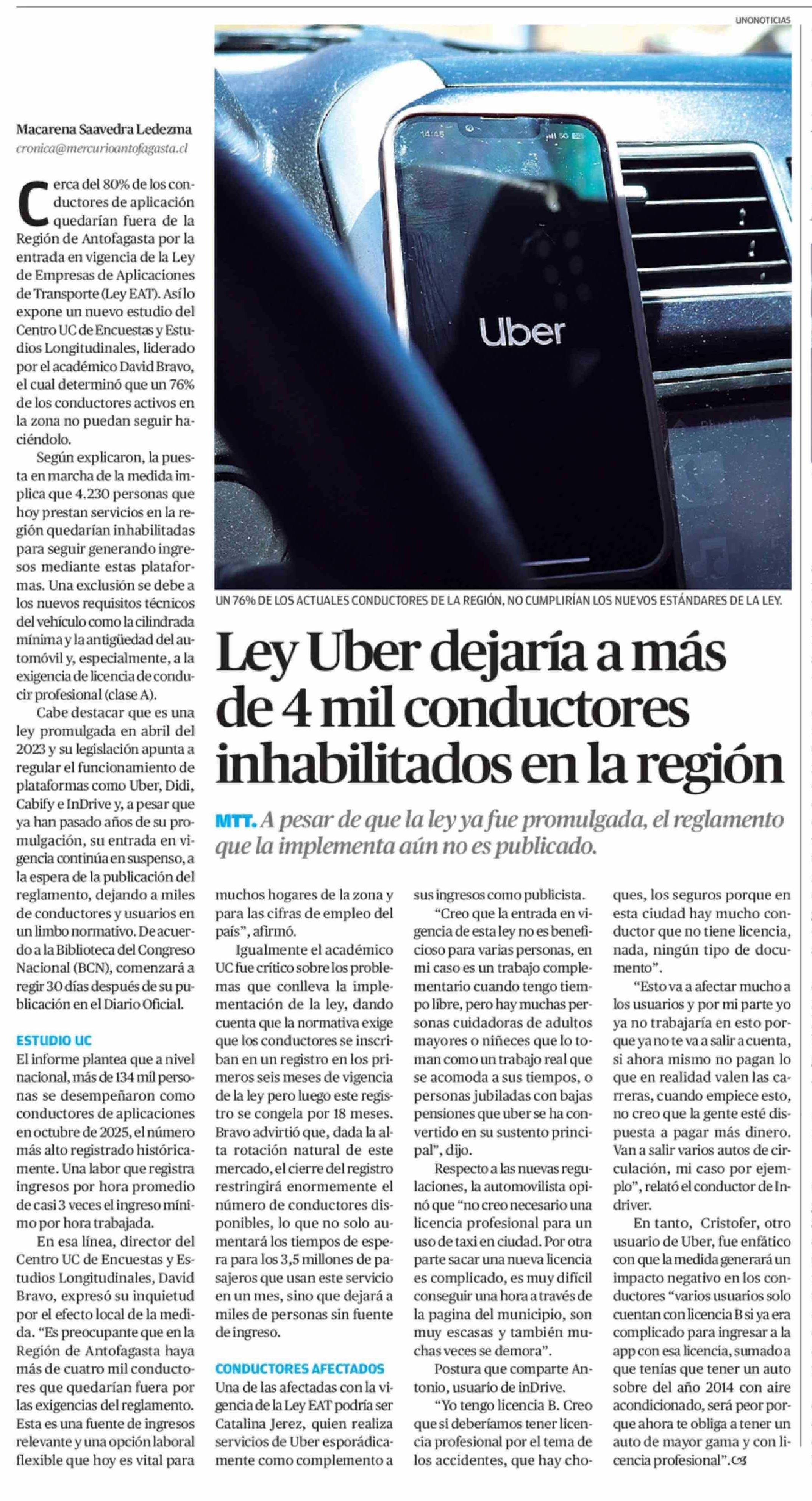 Ley Uber dejaría a más de 4 mil conductores inhabilitados en la región