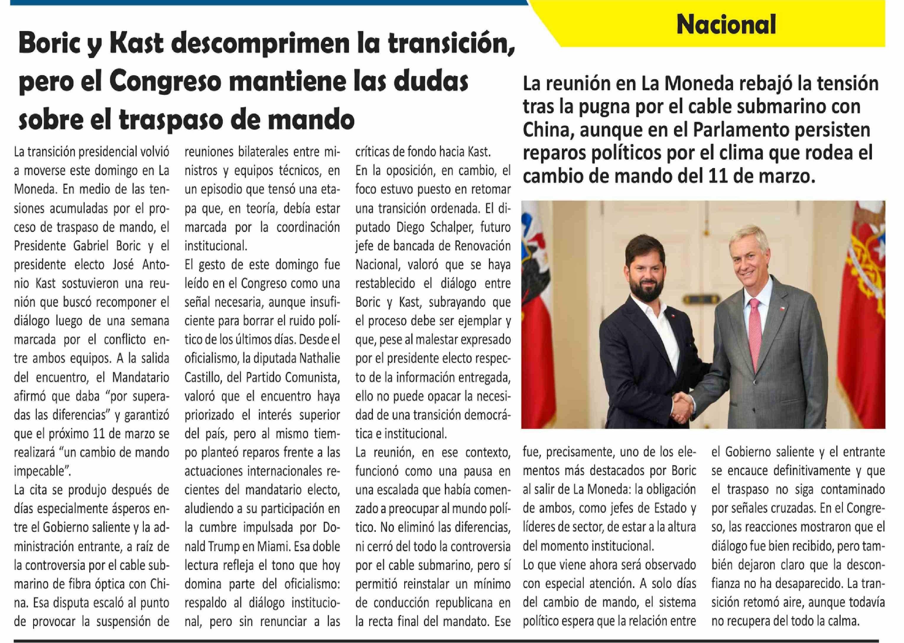 Boric y Kast descomprimen la transición, pero el Congreso mantiene las dudas sobre el traspaso de mando