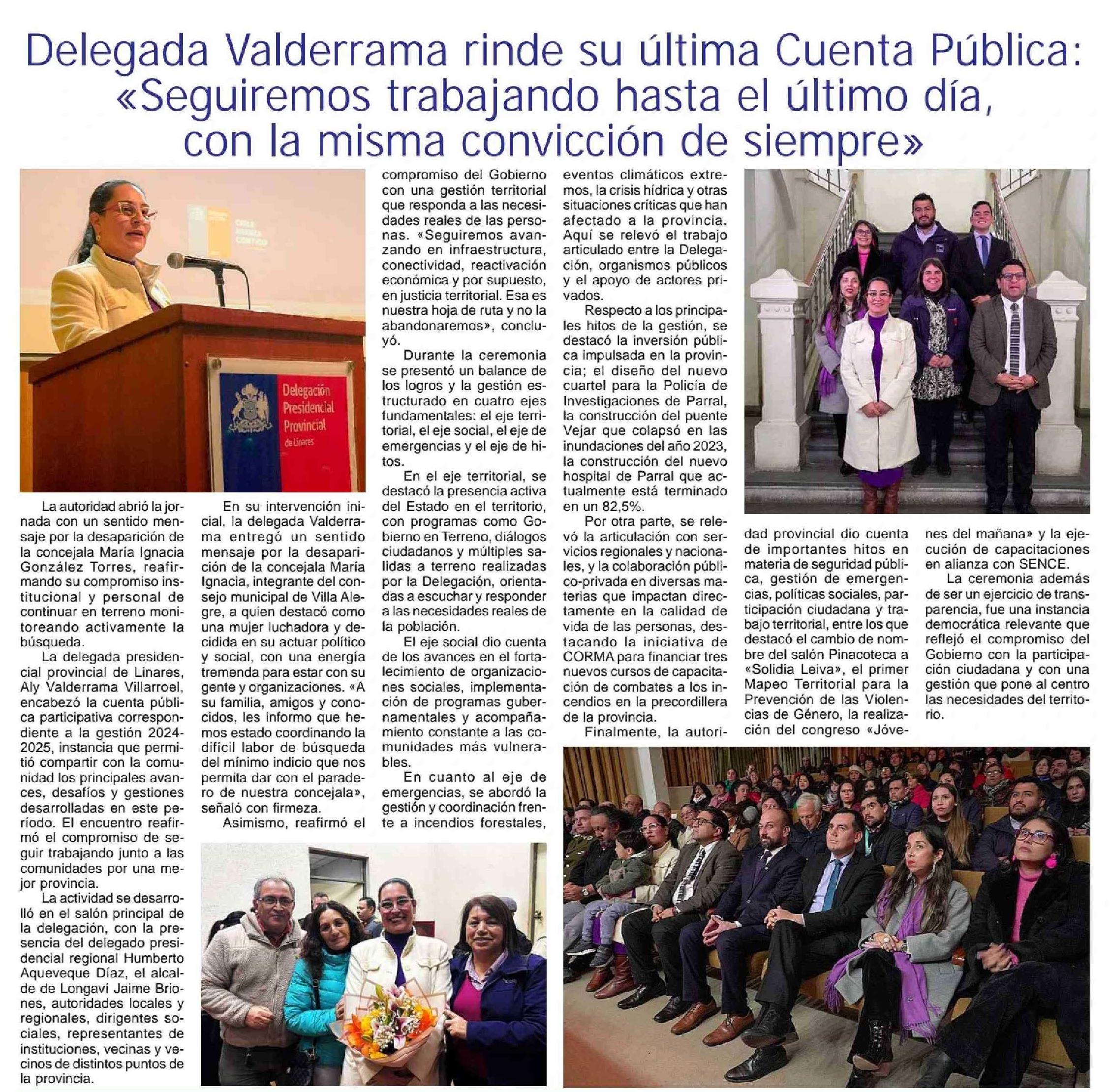 Delegada Valderrama rinde su última Cuenta Pública: «Seguiremos trabajando hasta el último día, con la misma convicción de siempre»