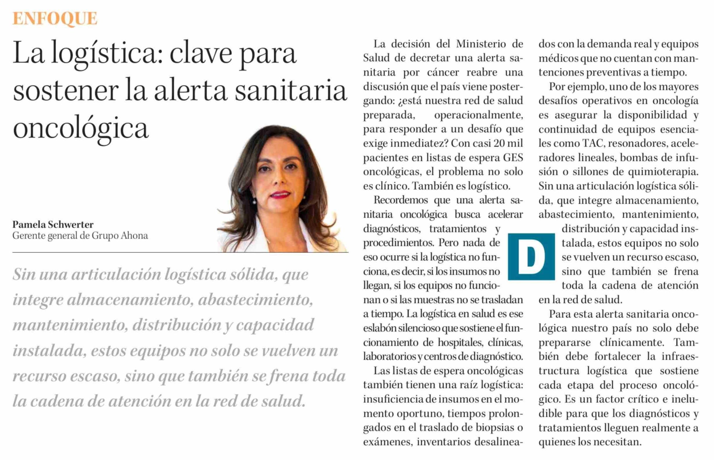 Título: Columnas de Opinión: La logística: clave para sostener la alerta sanitaria oncológica
