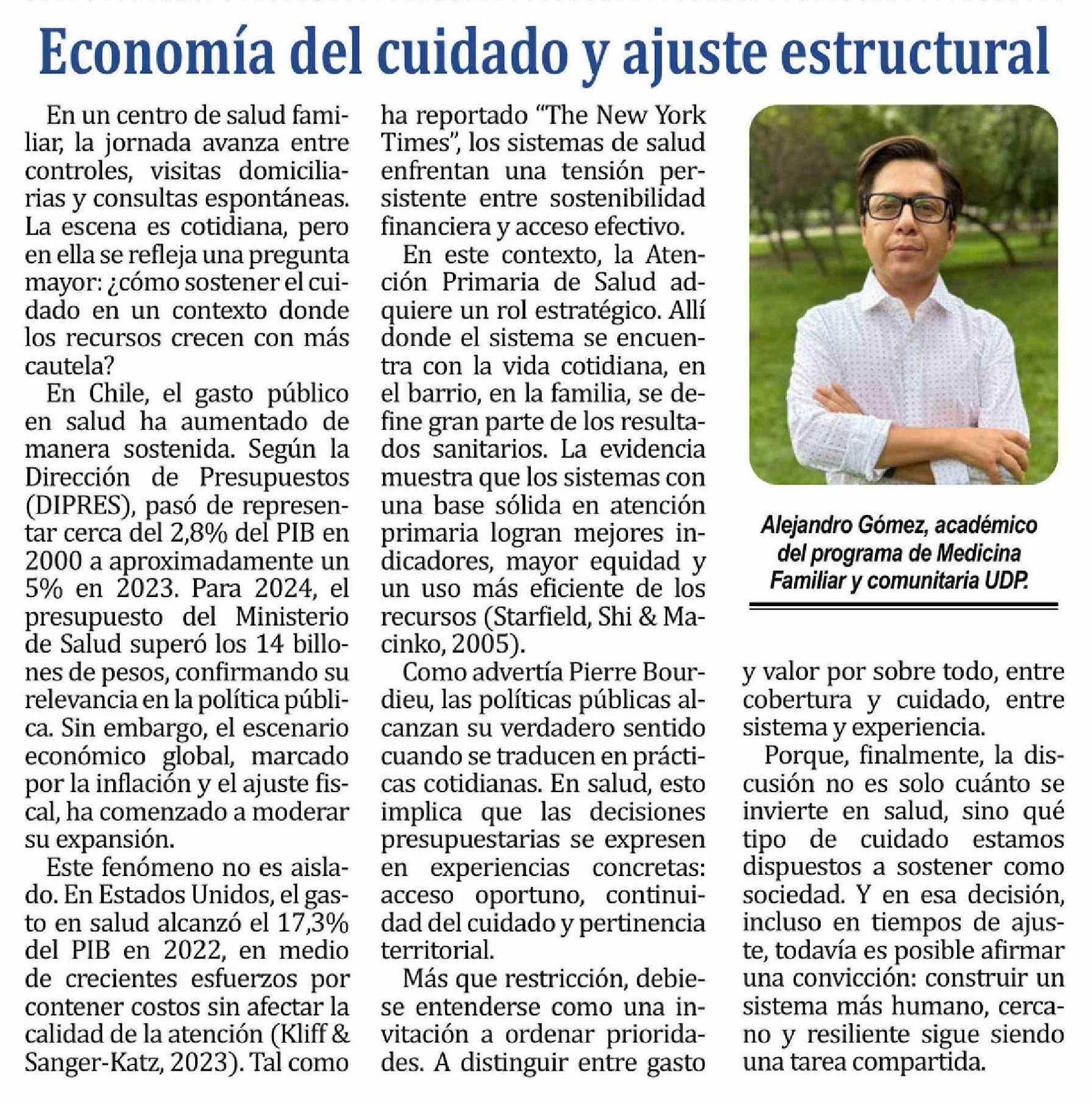 Título: Columnas de Opinión: Economía del cuidado y ajuste estructural