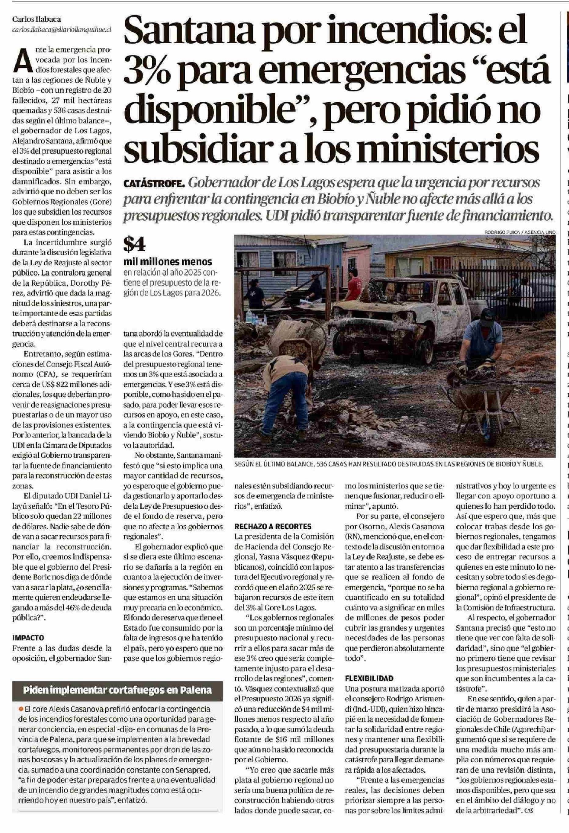 Santana por incendios: el 3% para emergencias "está disponible", pero pidió no subsidiar a los ministerios