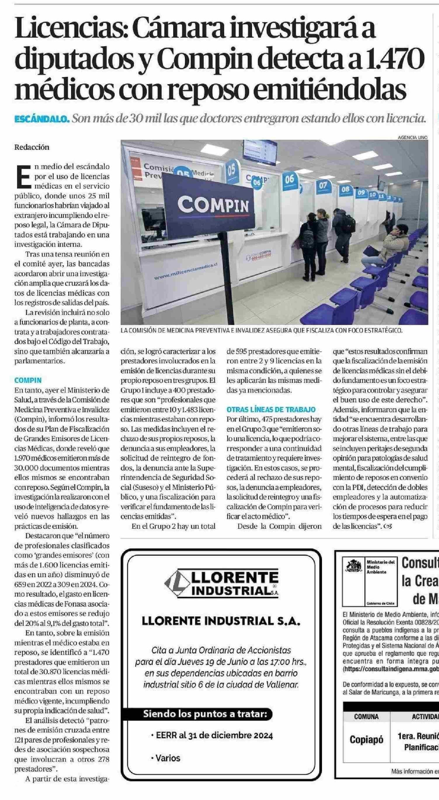 Licencias: Cámara investigará a médicos con reposo emitiéndolas diputados y Compin detecta a 1.470