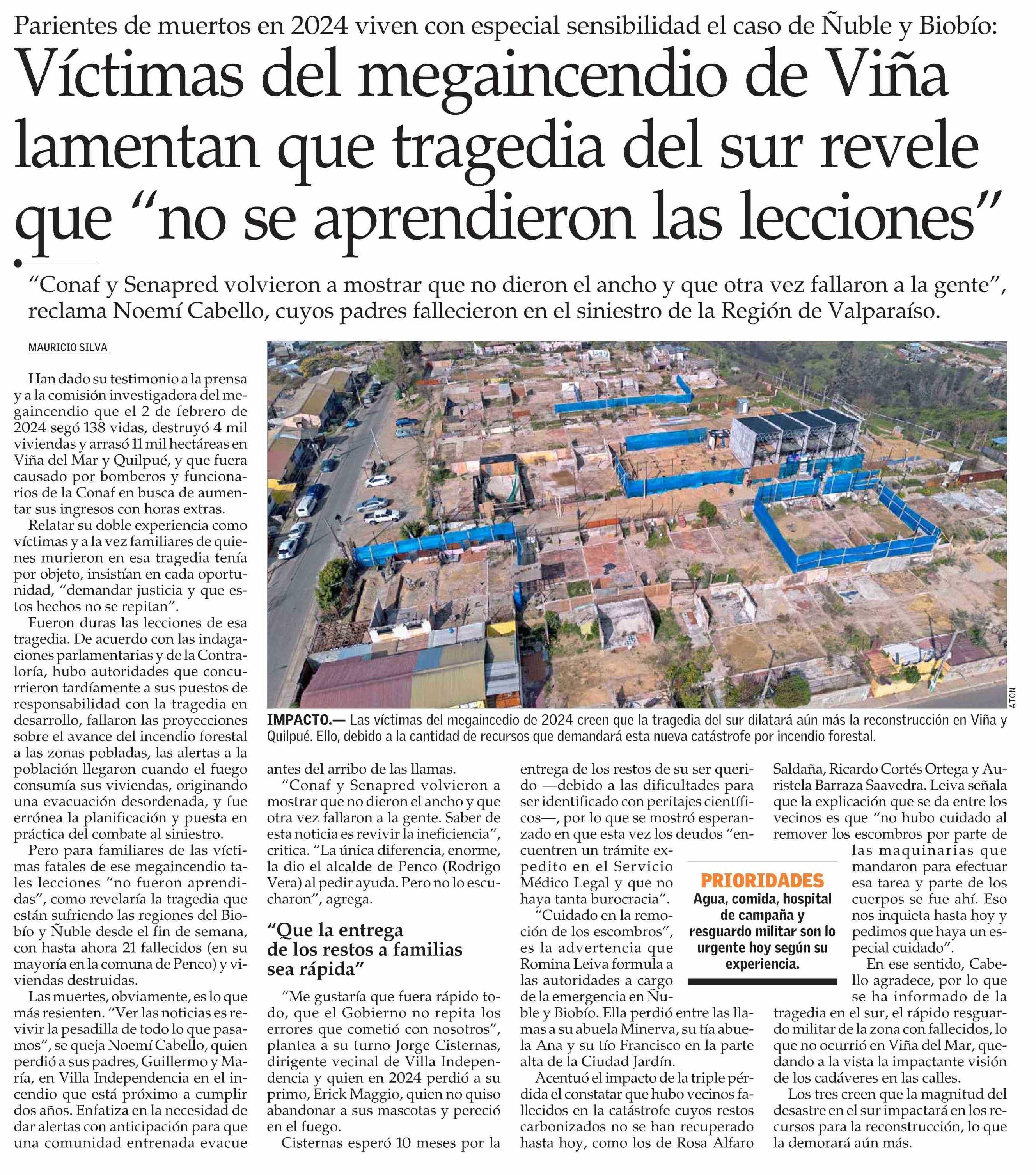 Título: Víctimas del megaincendio de Viña lamentan que tragedia del sur revele que “no se aprendieron las lecciones”