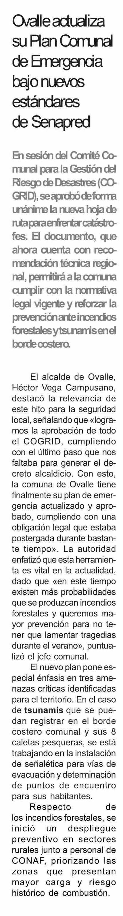 Ovalle actualiza su Plan Comunal de Emergencia bajo nuevos estándares de Senapred