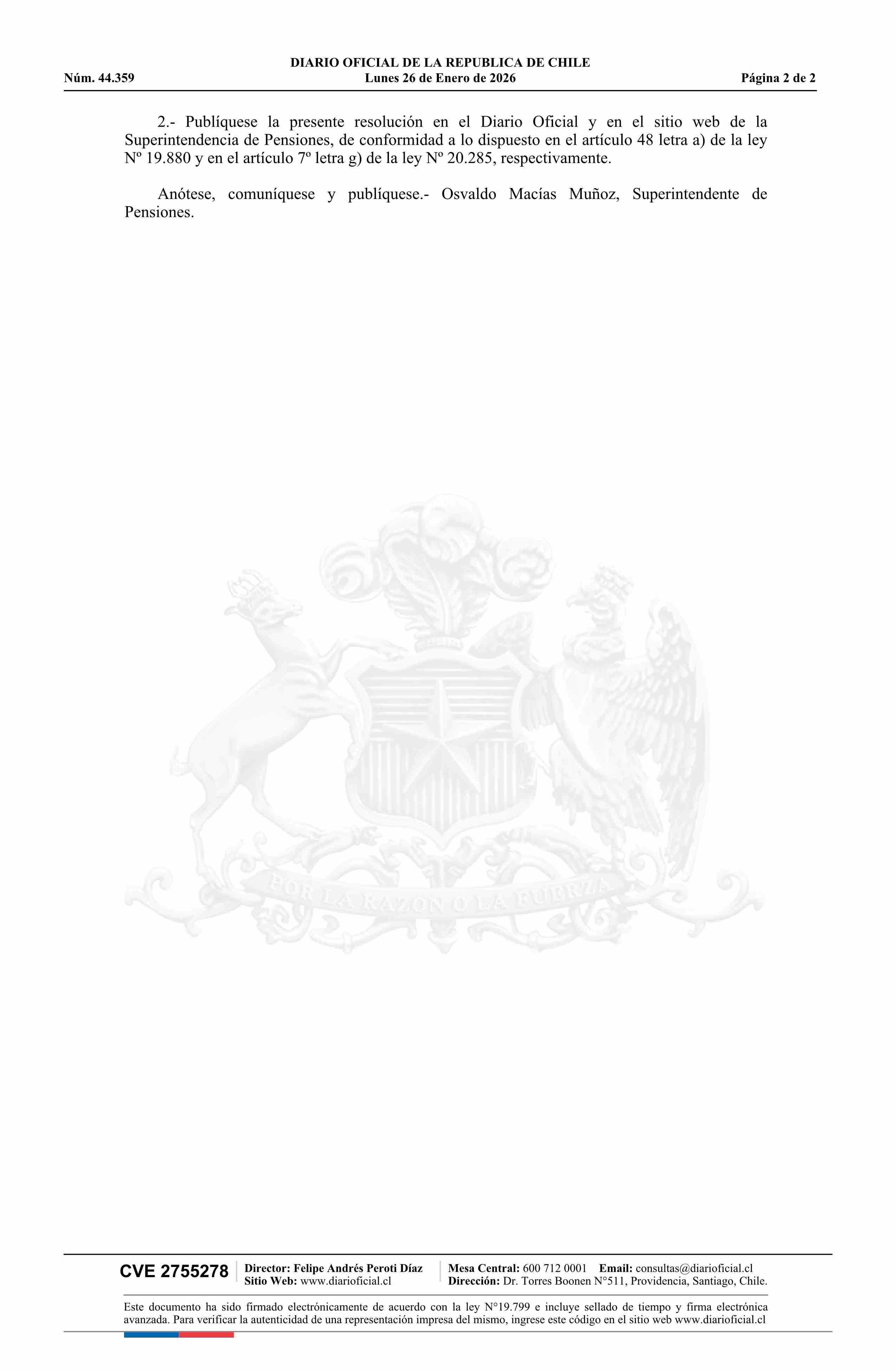 | Título: | Resolución exenta número 27, de 2026.- Fija tope imponible para las cotizaciones obligatorias del sistema de pensiones, de salud y de la ley de accidentes de trabajo |