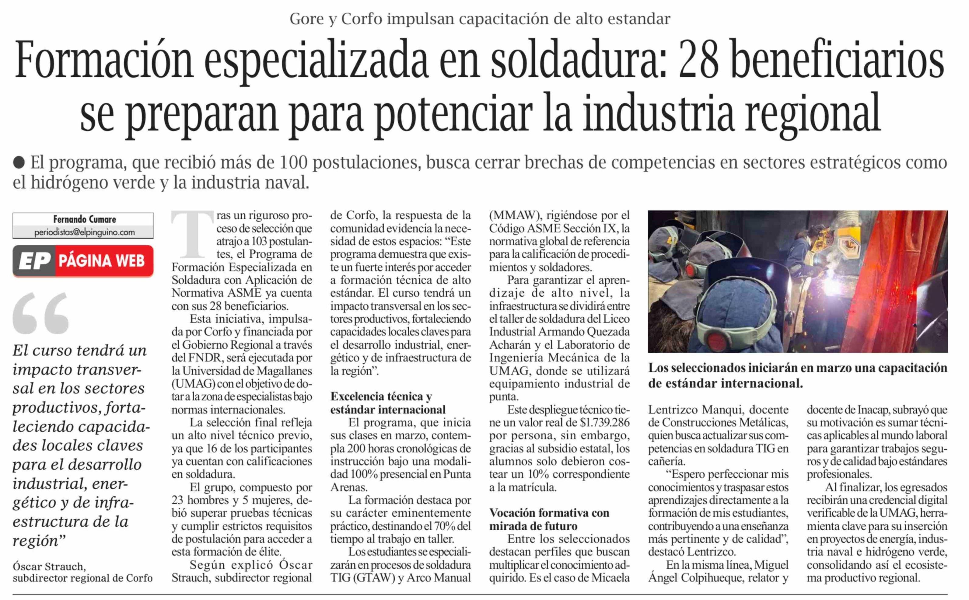 Formación especializada en soldadura: 28 beneficiarios se preparan para potenciar la industria regional