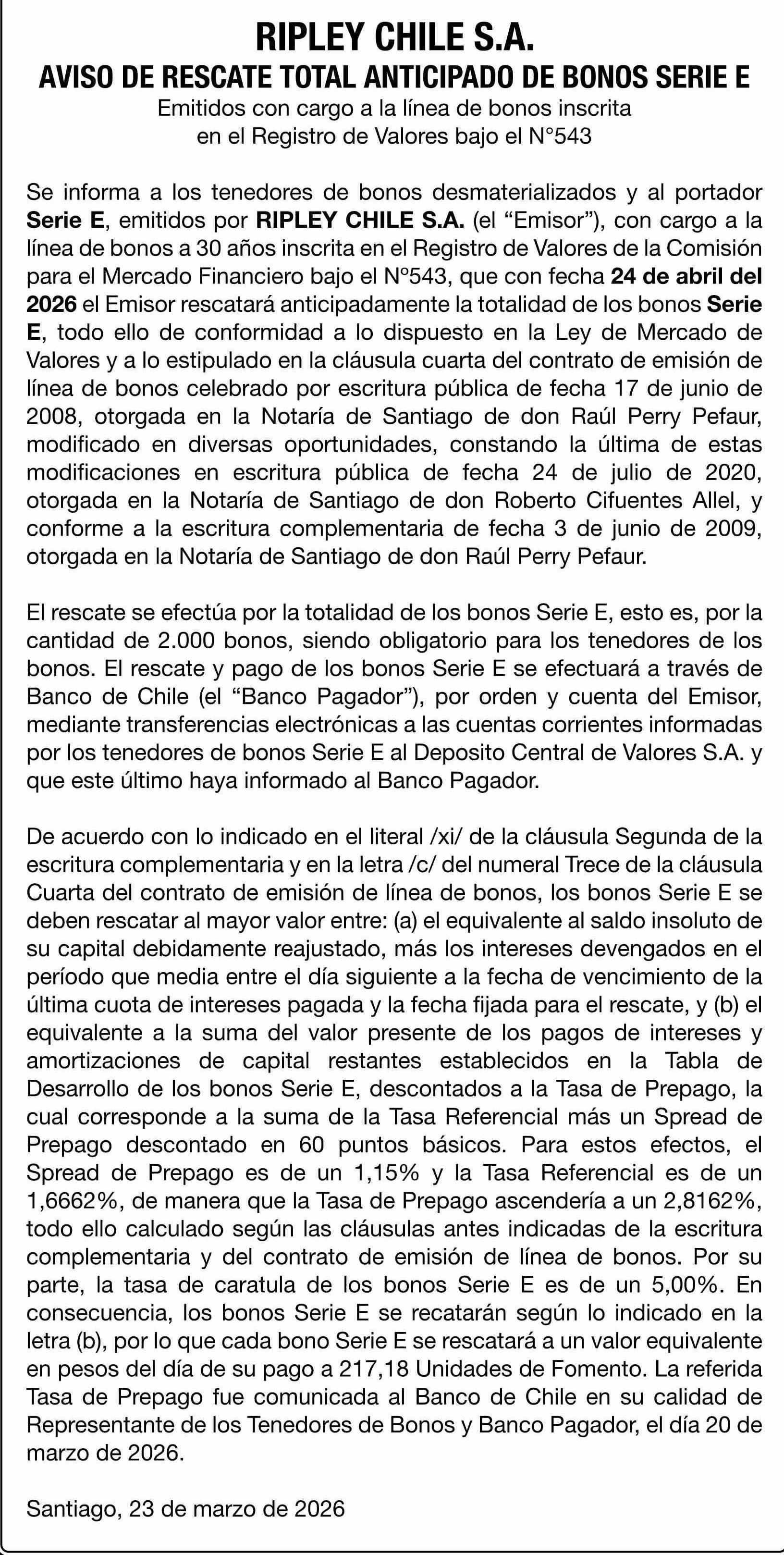 RIPLEY CHILE S.A.