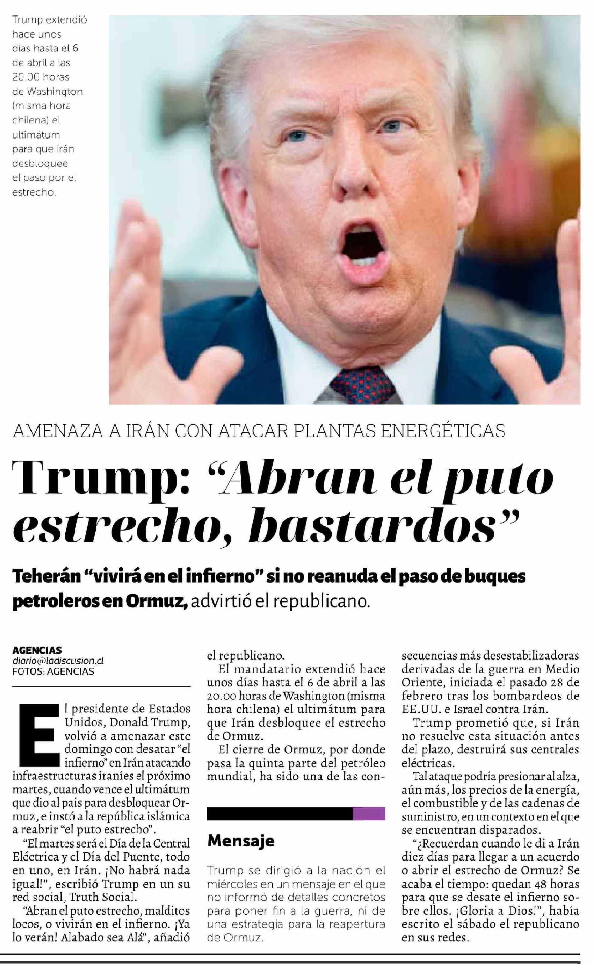 Trump: "Abran el puto estrecho, bastardos"