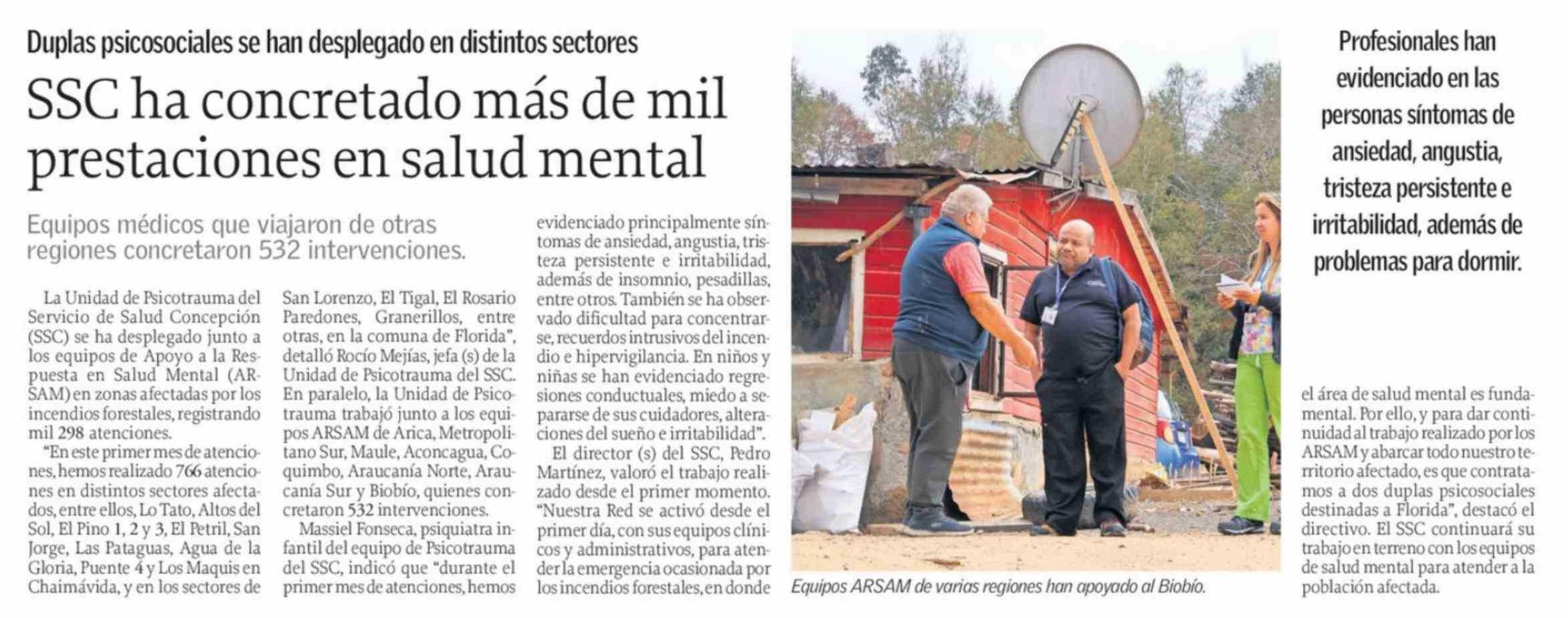 SSC ha concretado más de mil prestaciones en salud mental