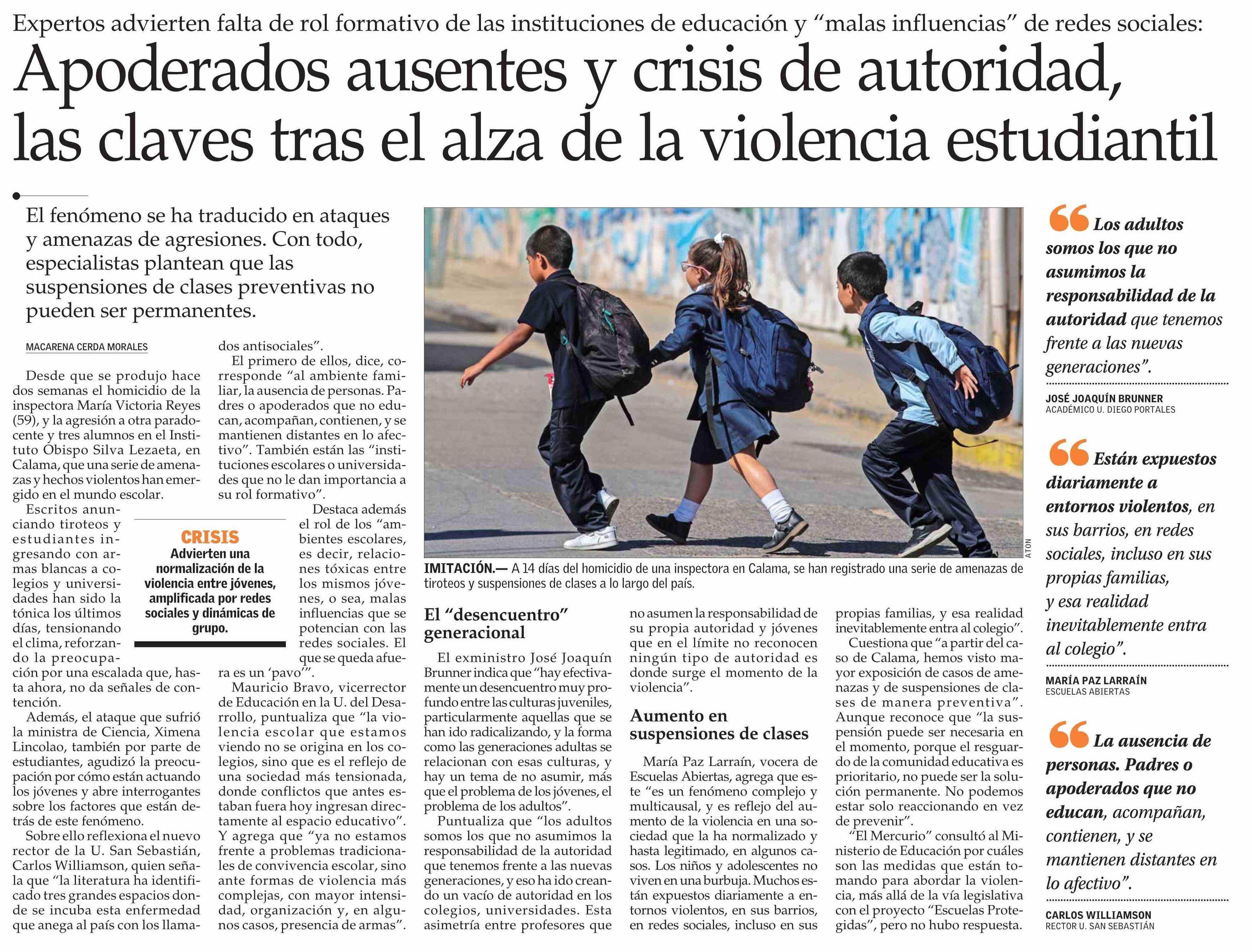 Título: Apoderados ausentes y crisis de autoridad, las claves tras el alza de la violencia estudiantil