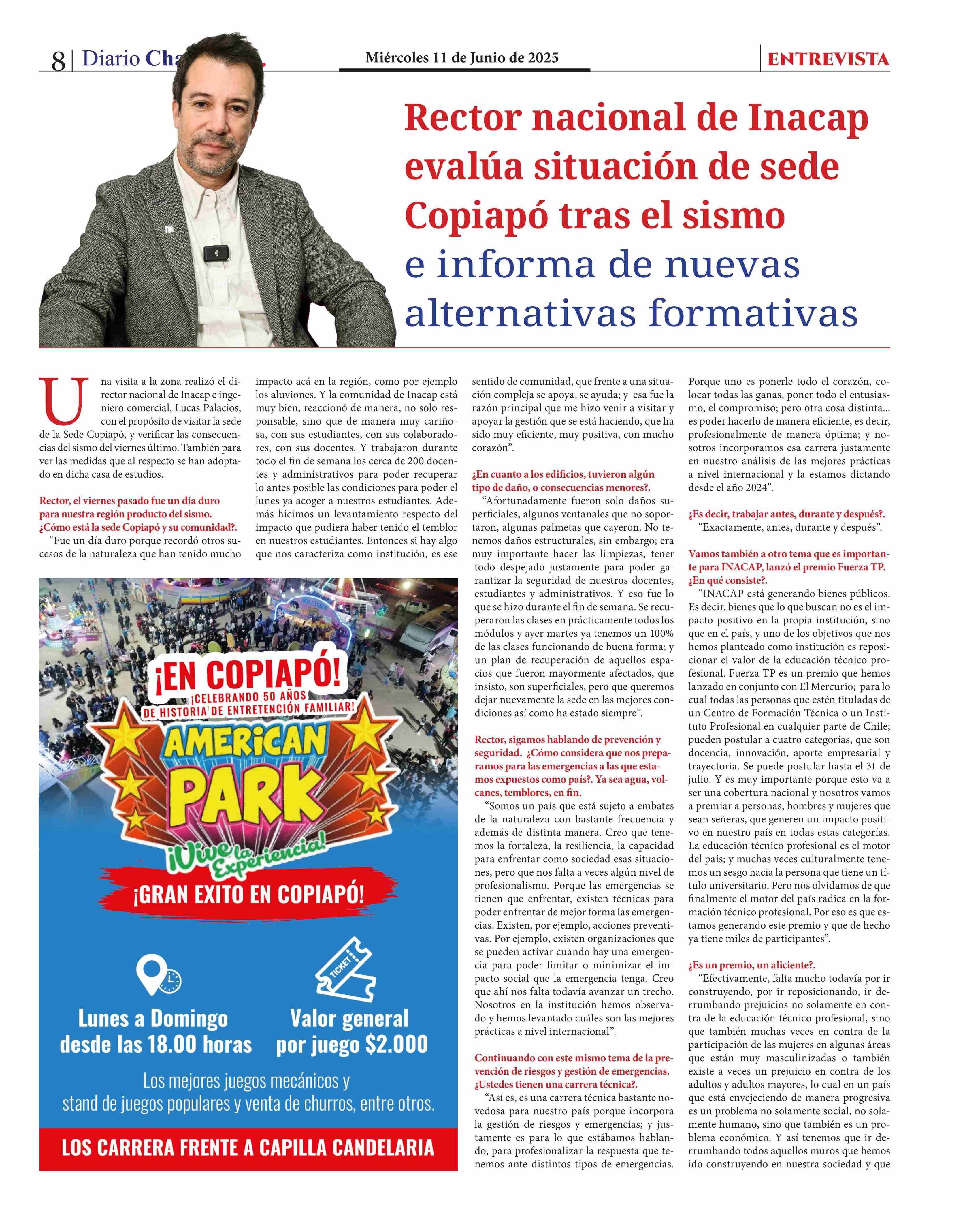 Rector nacional de Inacap evalúa situación de sede Copiapó tras el sismo e informa de nuevas alternativas formativas