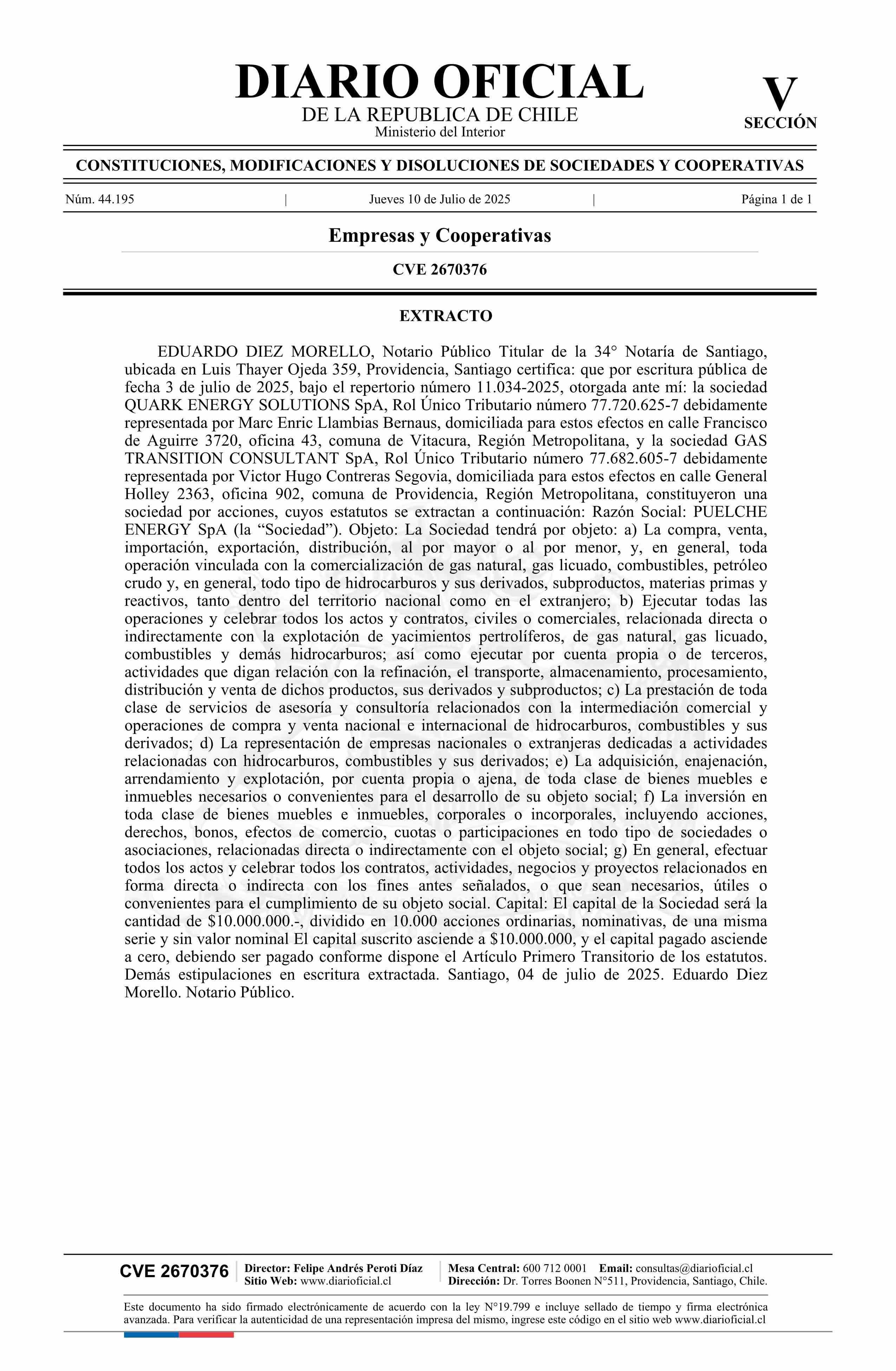 Diario Oficial Edición Electrónica (Diario Oficial de Chile - 5 Empresas Y Cooper)