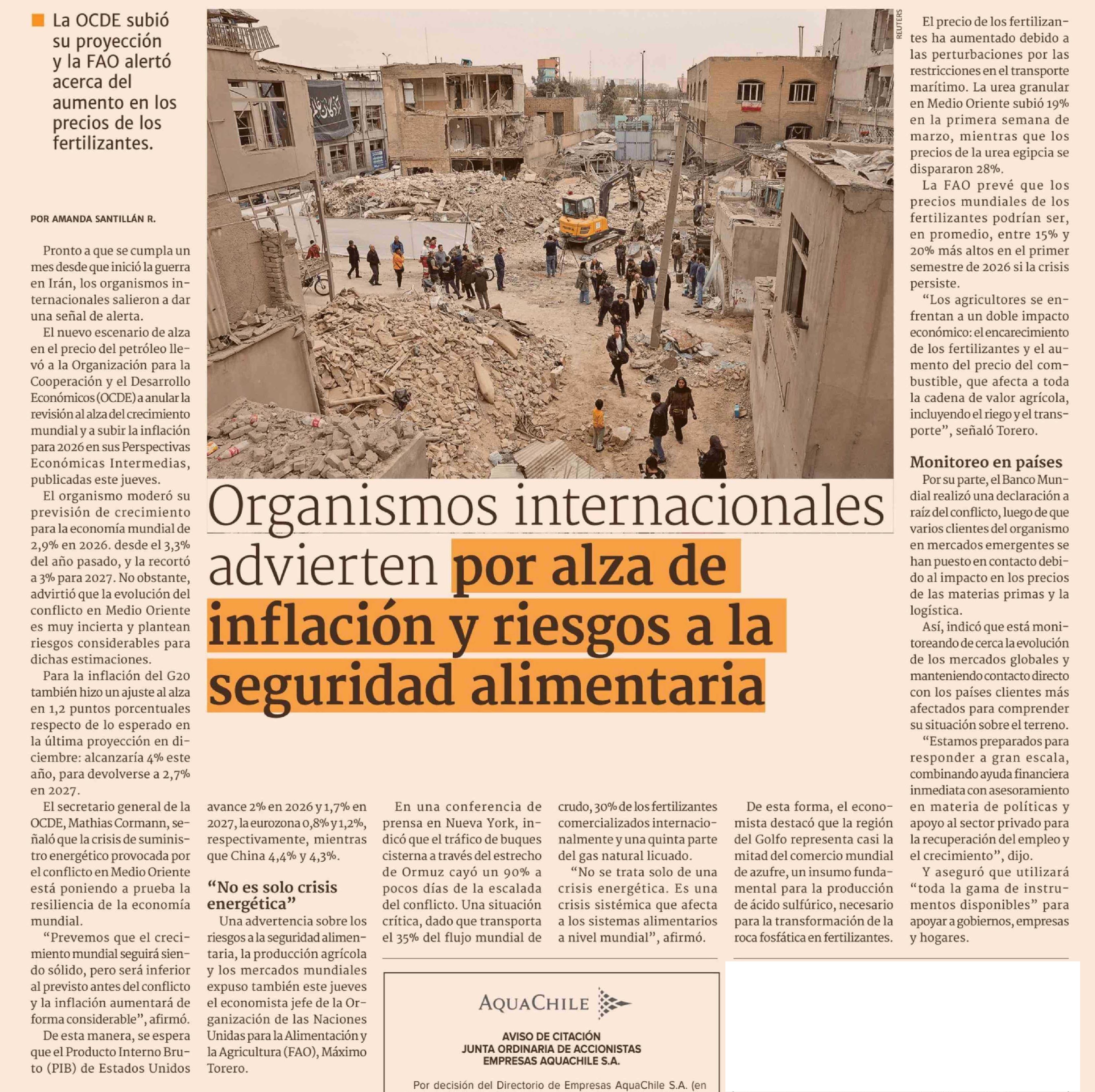 Organismos internacionales advierten por alza de inflación y riesgos a la seguridad alimentaria