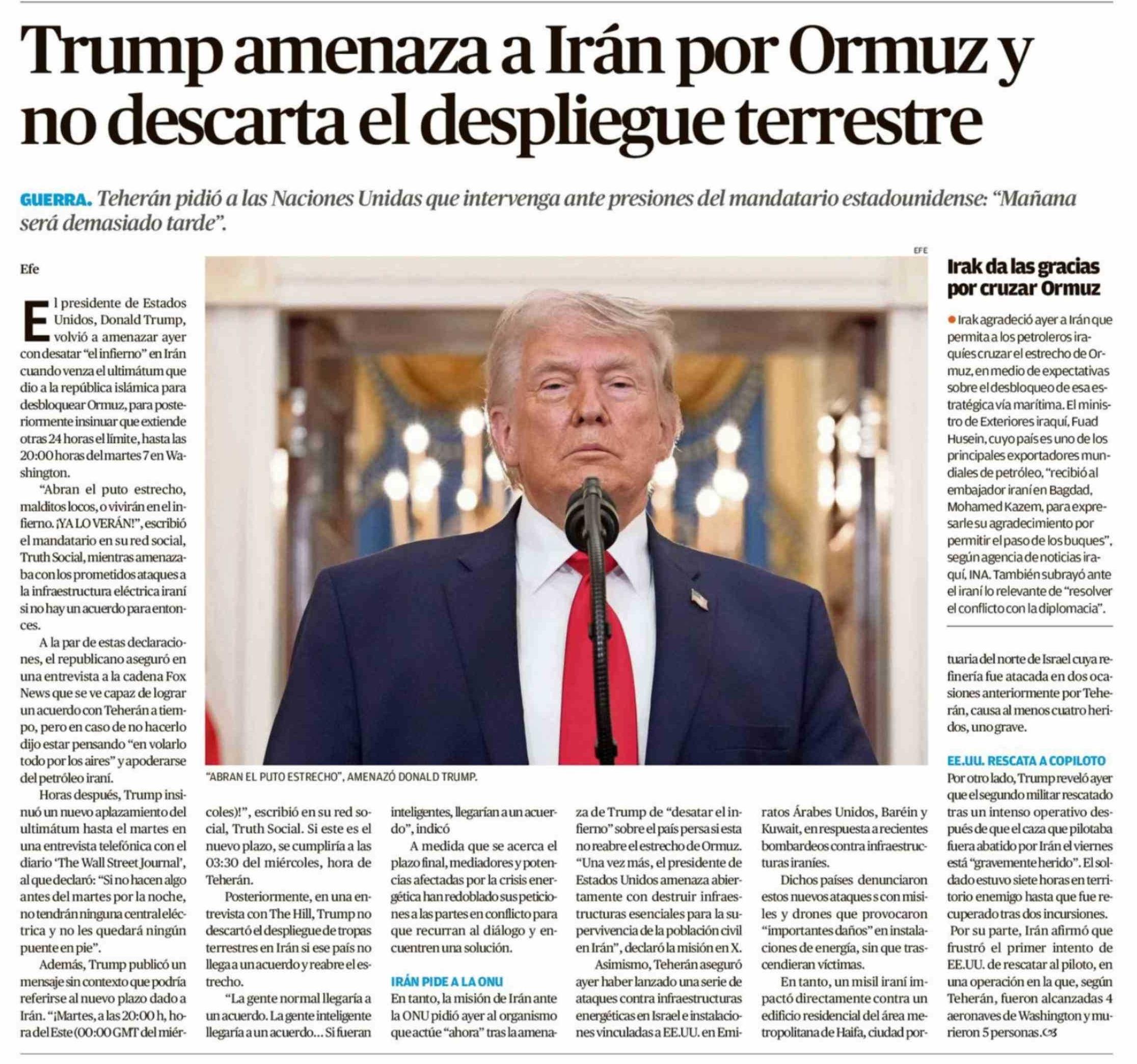 Trump amenaza a Irán por Ormuz y no descarta el despliegue terrestre