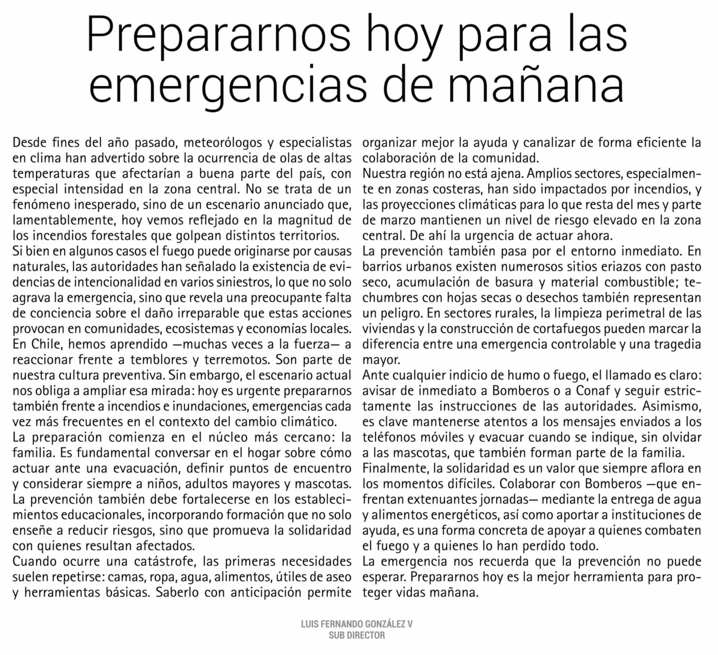 Prepararnos hoy para las emergencias de mañana