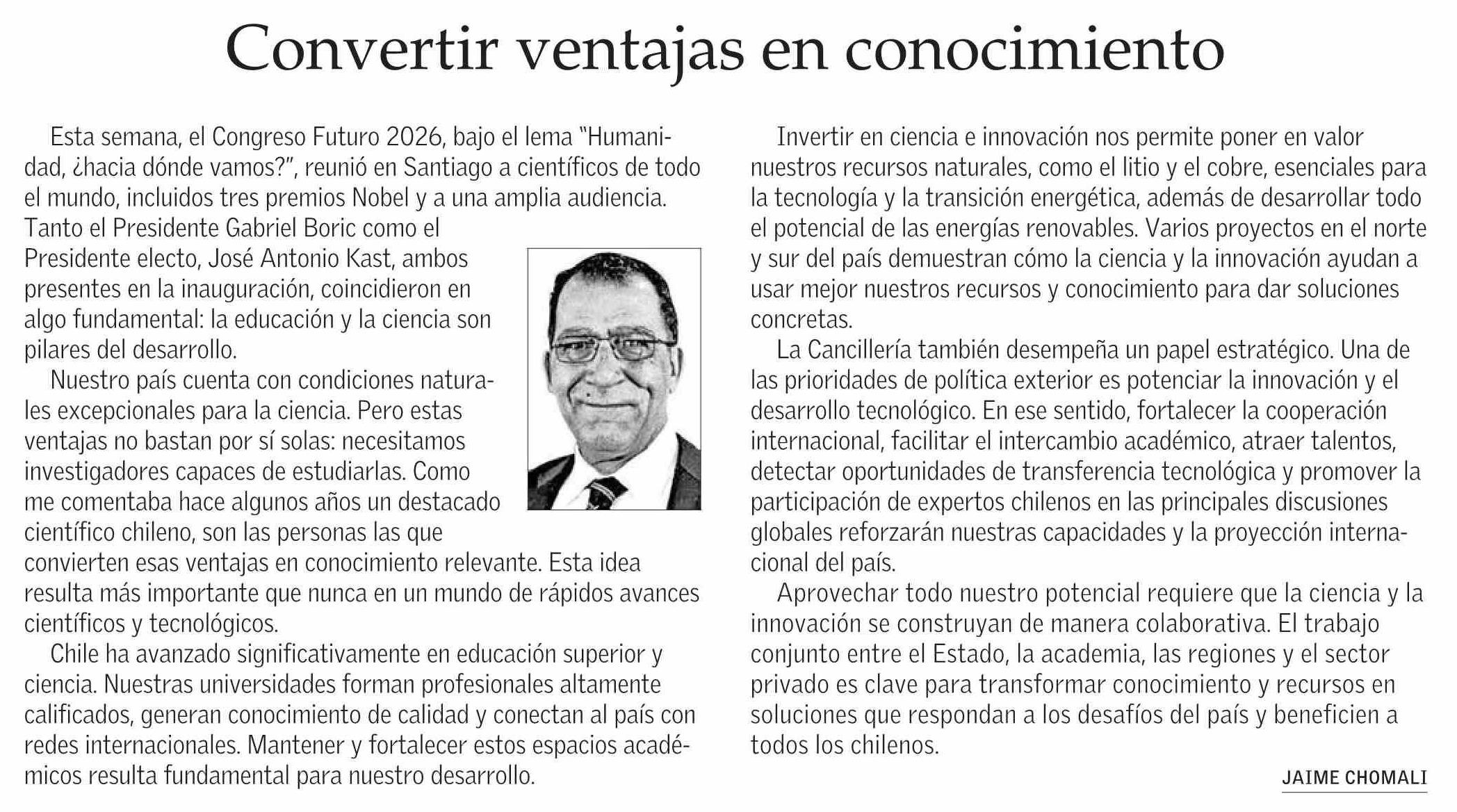 Columnas de Opinión: Convertir ventajas en conocimiento