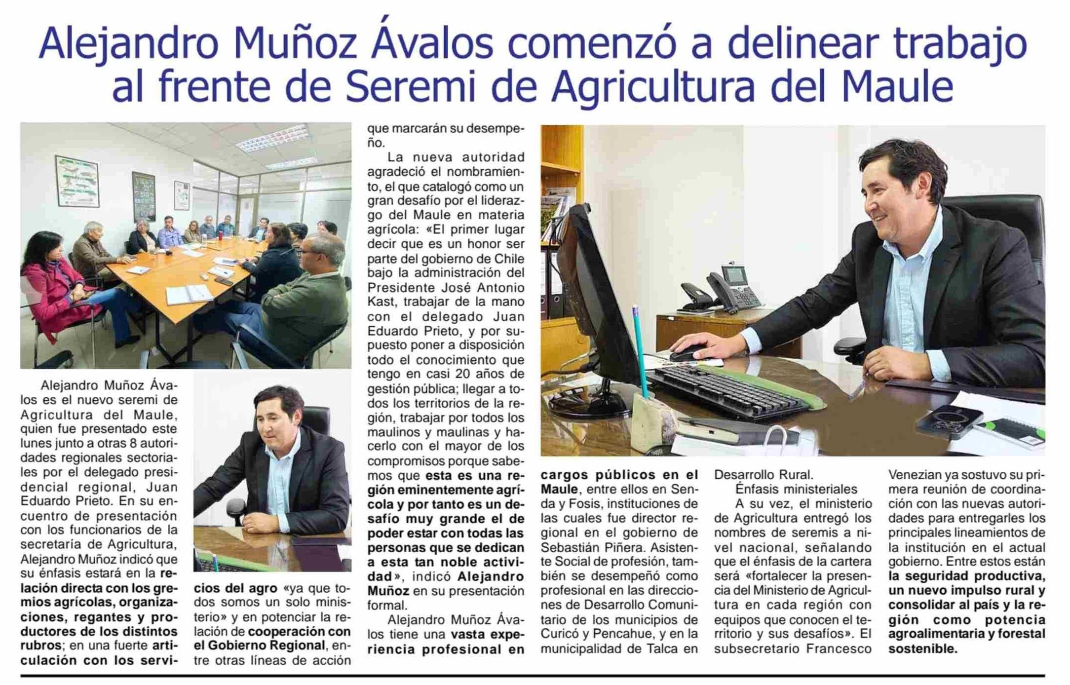 Alejandro Muñoz Ávalos comenzó a delinear trabajo al frente de Seremi de Agricultura del Maule