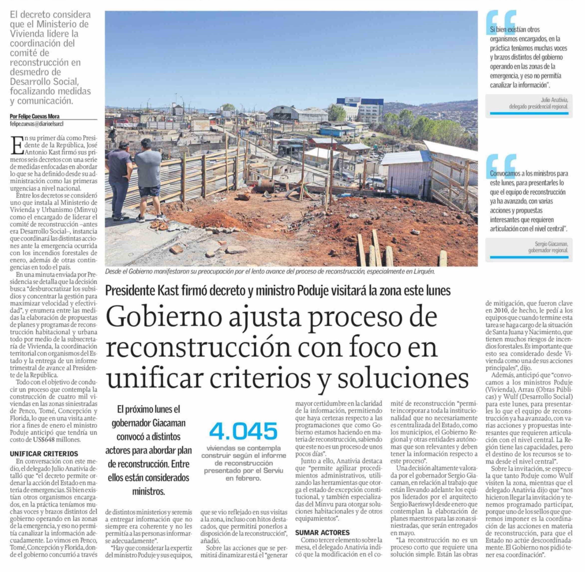 Gobierno ajusta proceso de reconstrucción con foco en unificar criterios y soluciones