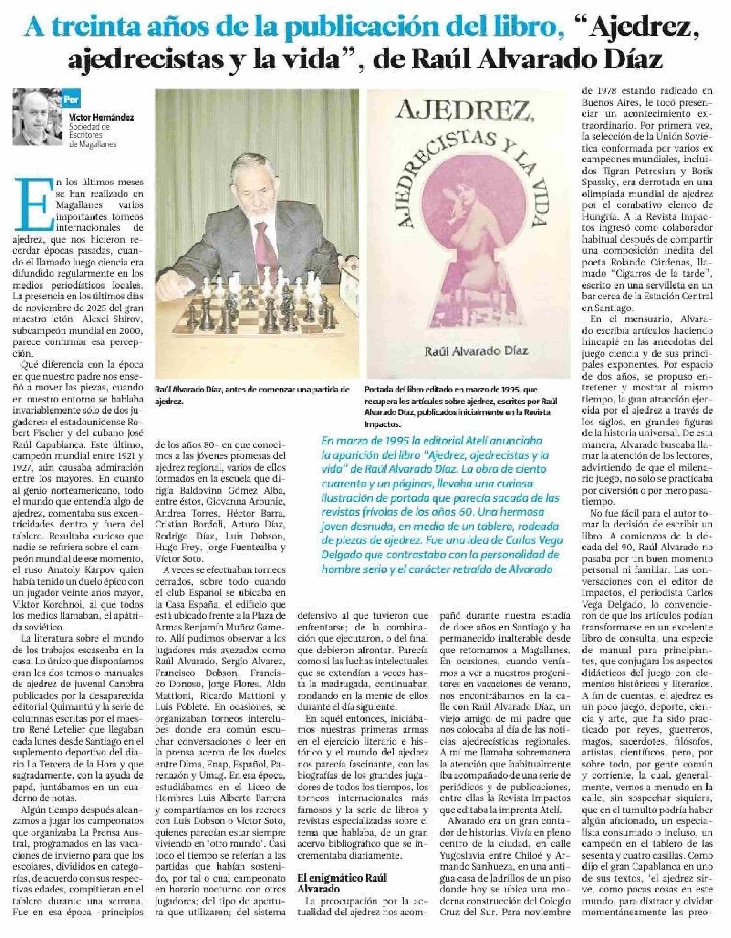 A treinta años de la publicación del libro, "Ajedrez, ajedrecistas y la vida", de Raúl Alvarado Díaz