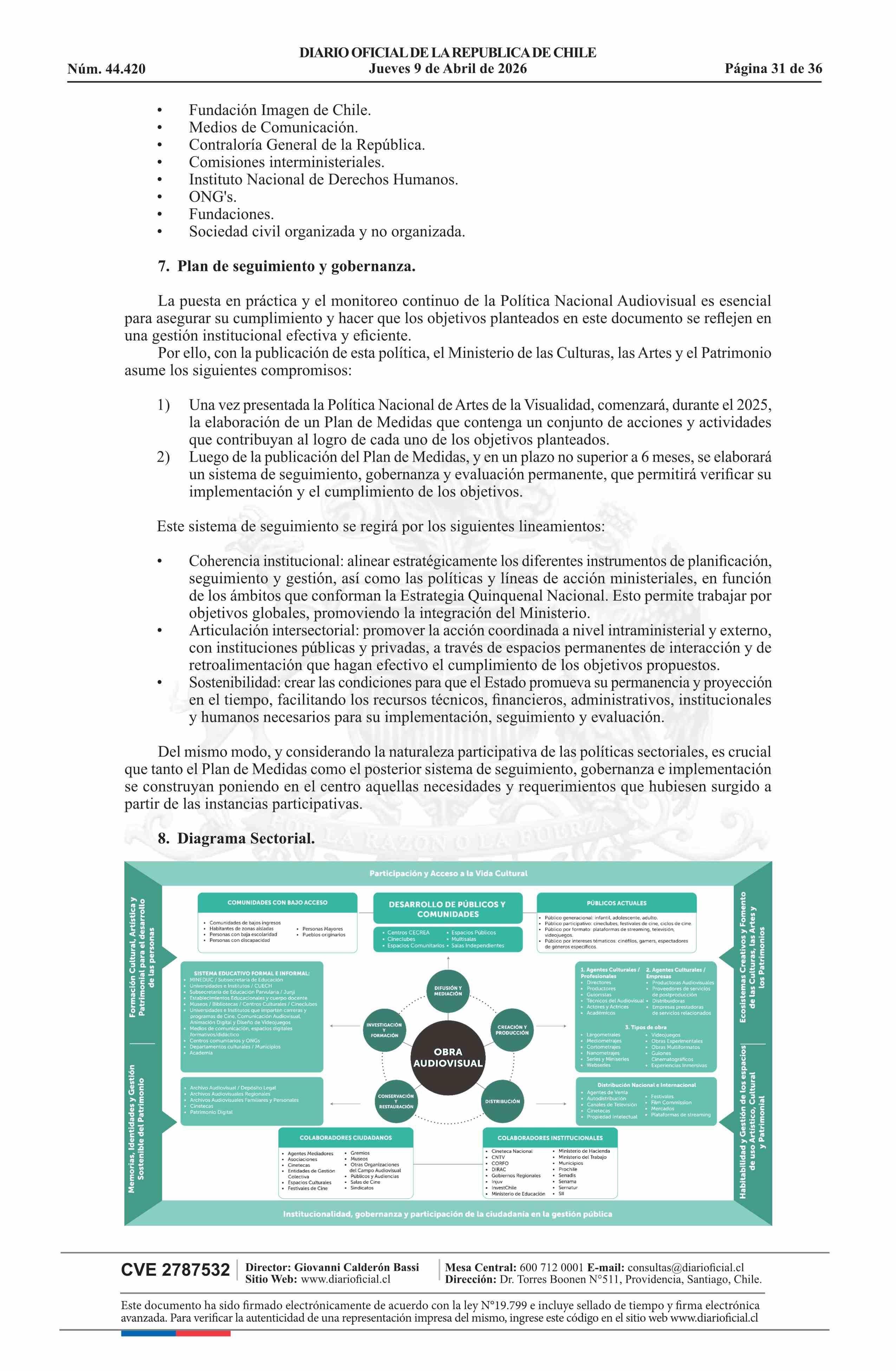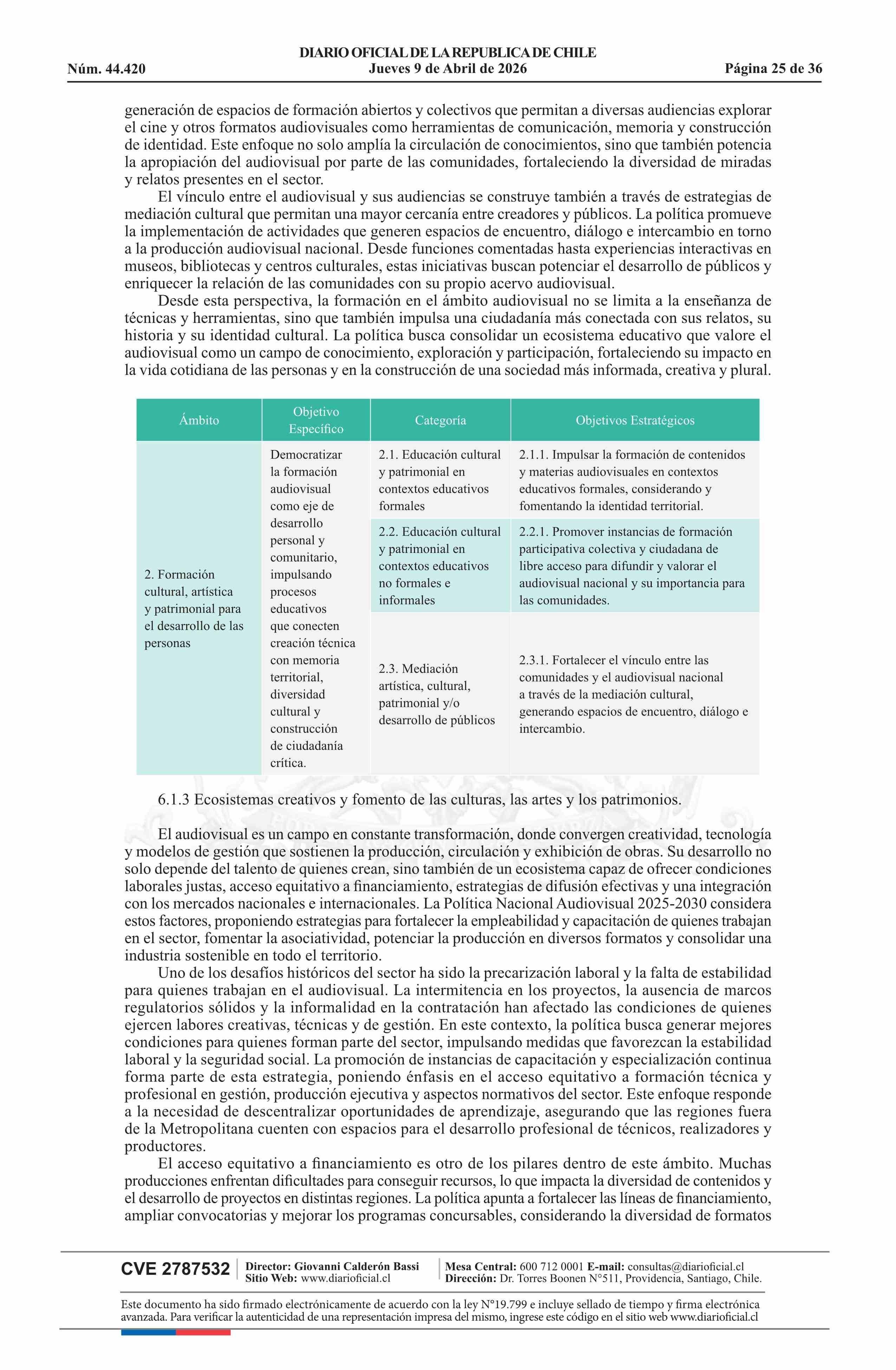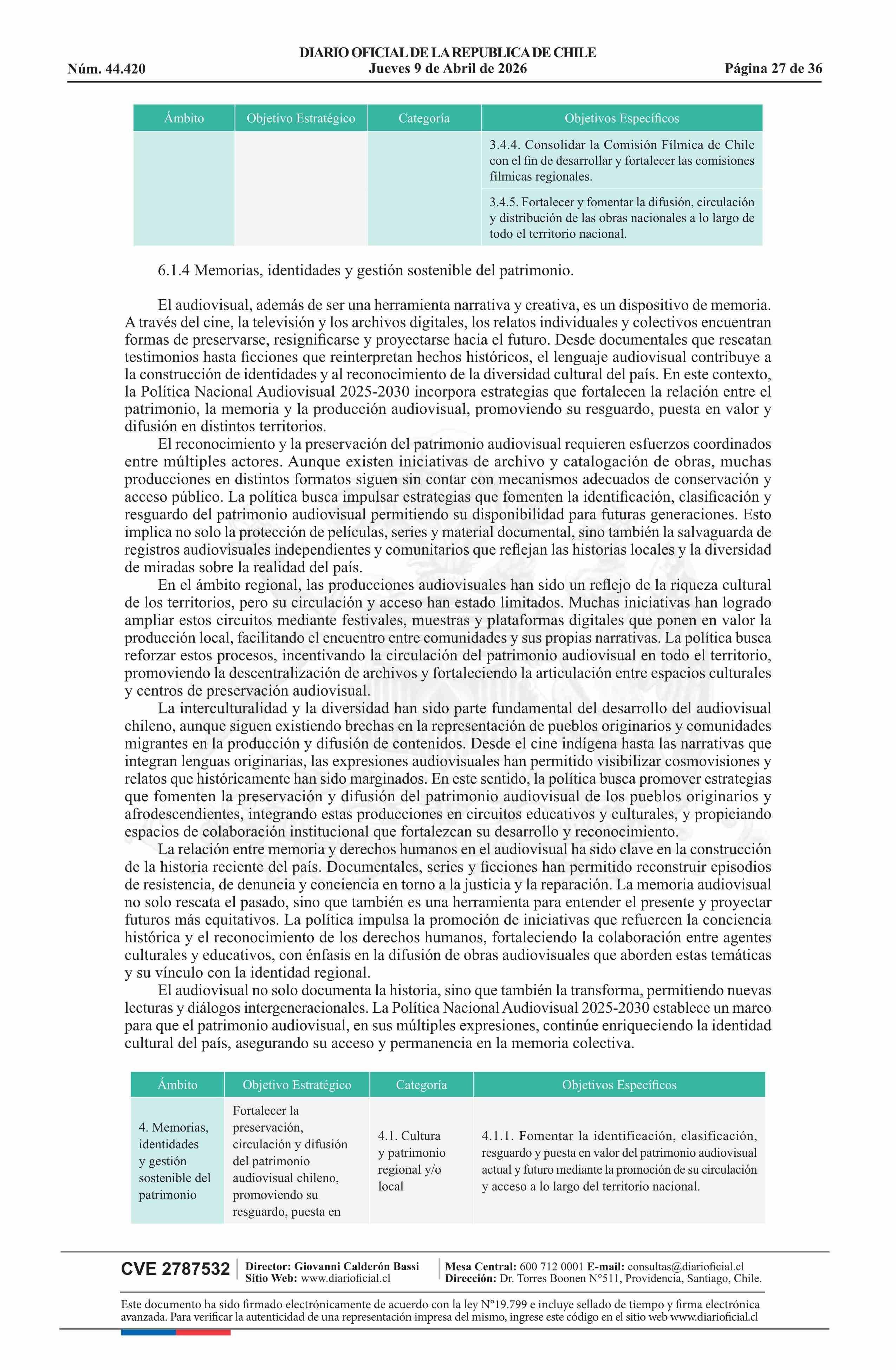 | Título: | Resolución exenta número 792, de 2026.- Aprueba Política Nacional Audiovisual 2025-2030 |
