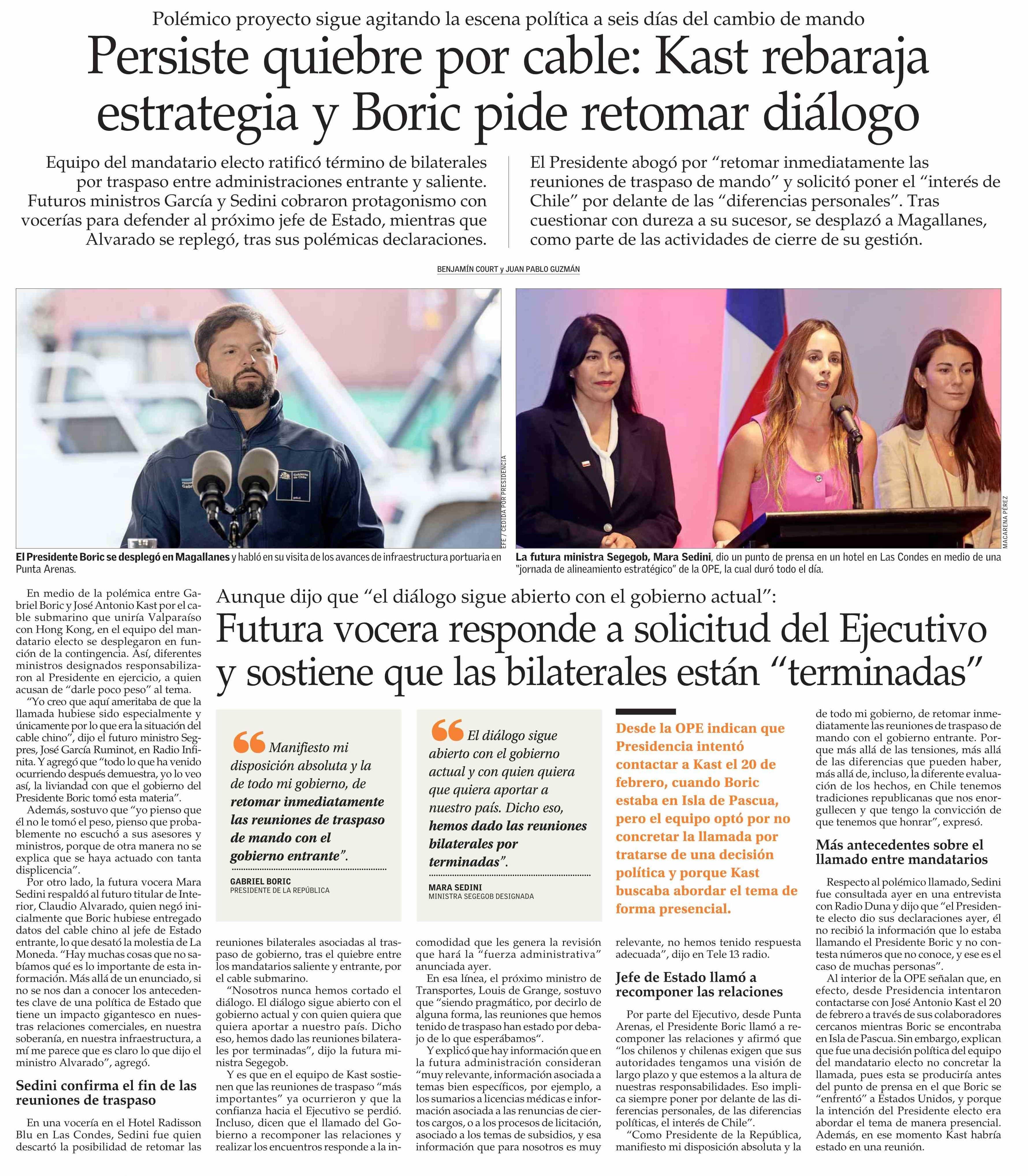 Persiste quiebre por cable: Kast rebaraja estrategia y Boric pide retomar diálogo