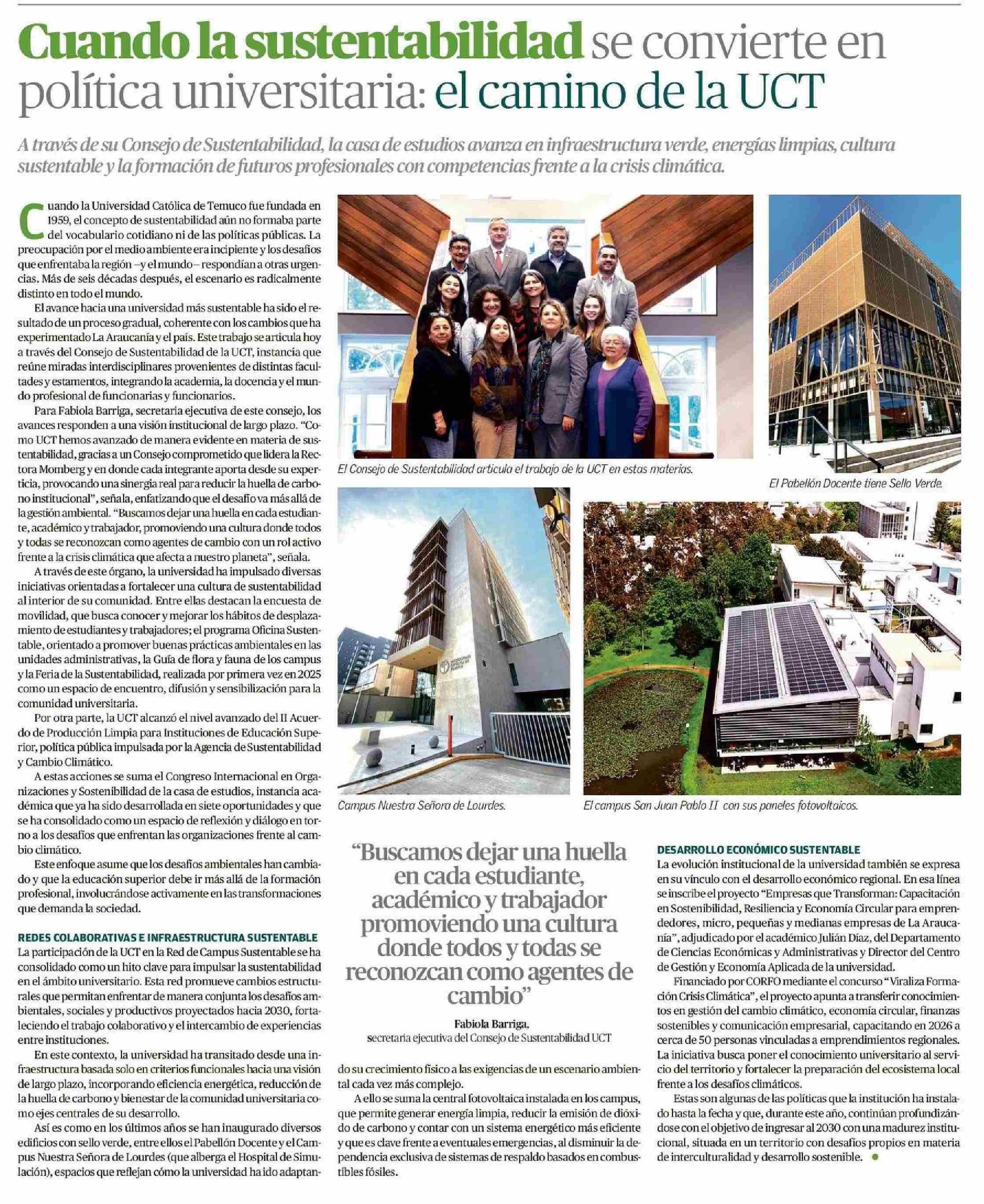 Título: Cuando la sustentabilidad se convierte en política universitaria: el camino de la UCT
