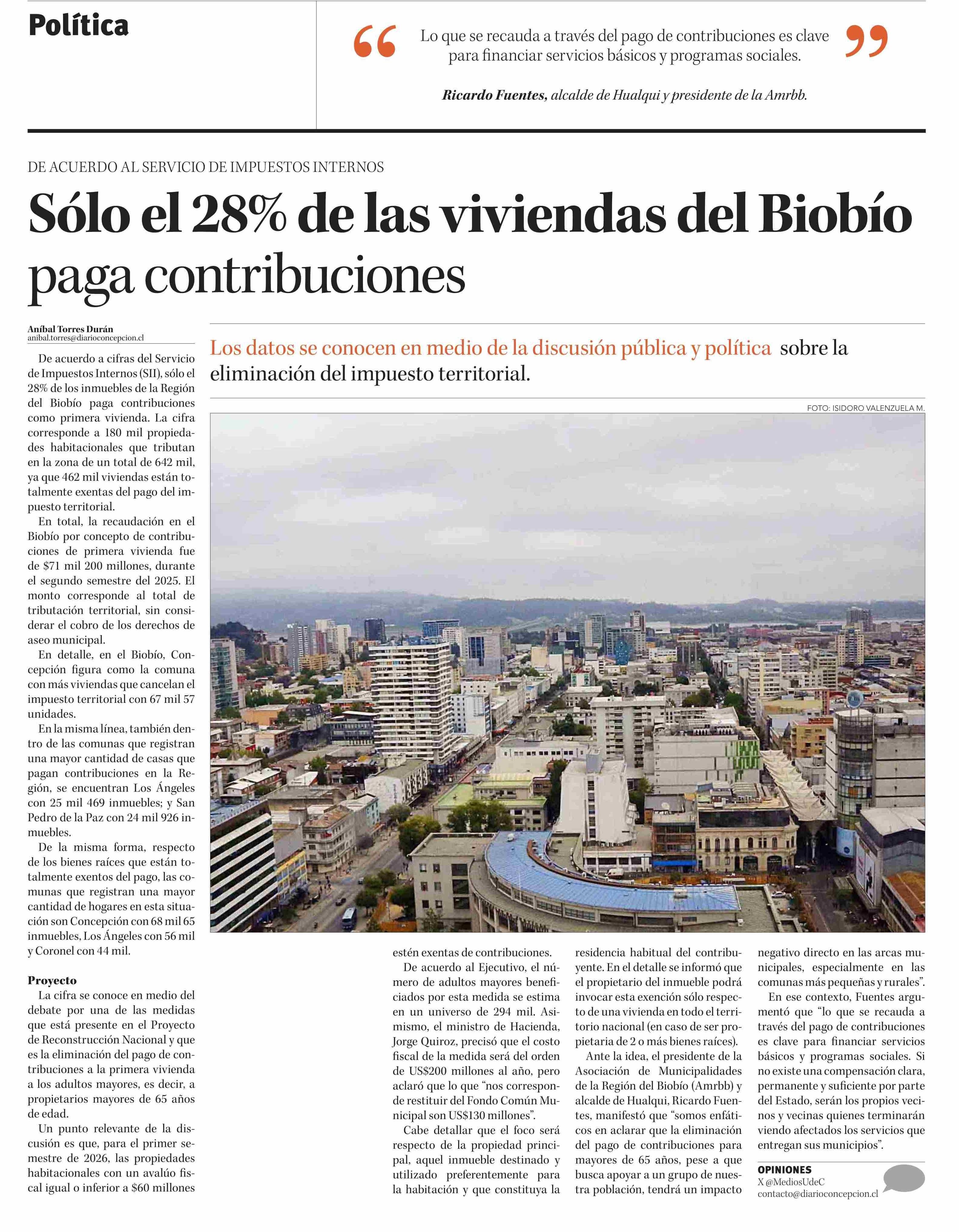 Sólo el 28% de las viviendas del Biobío paga contribuciones