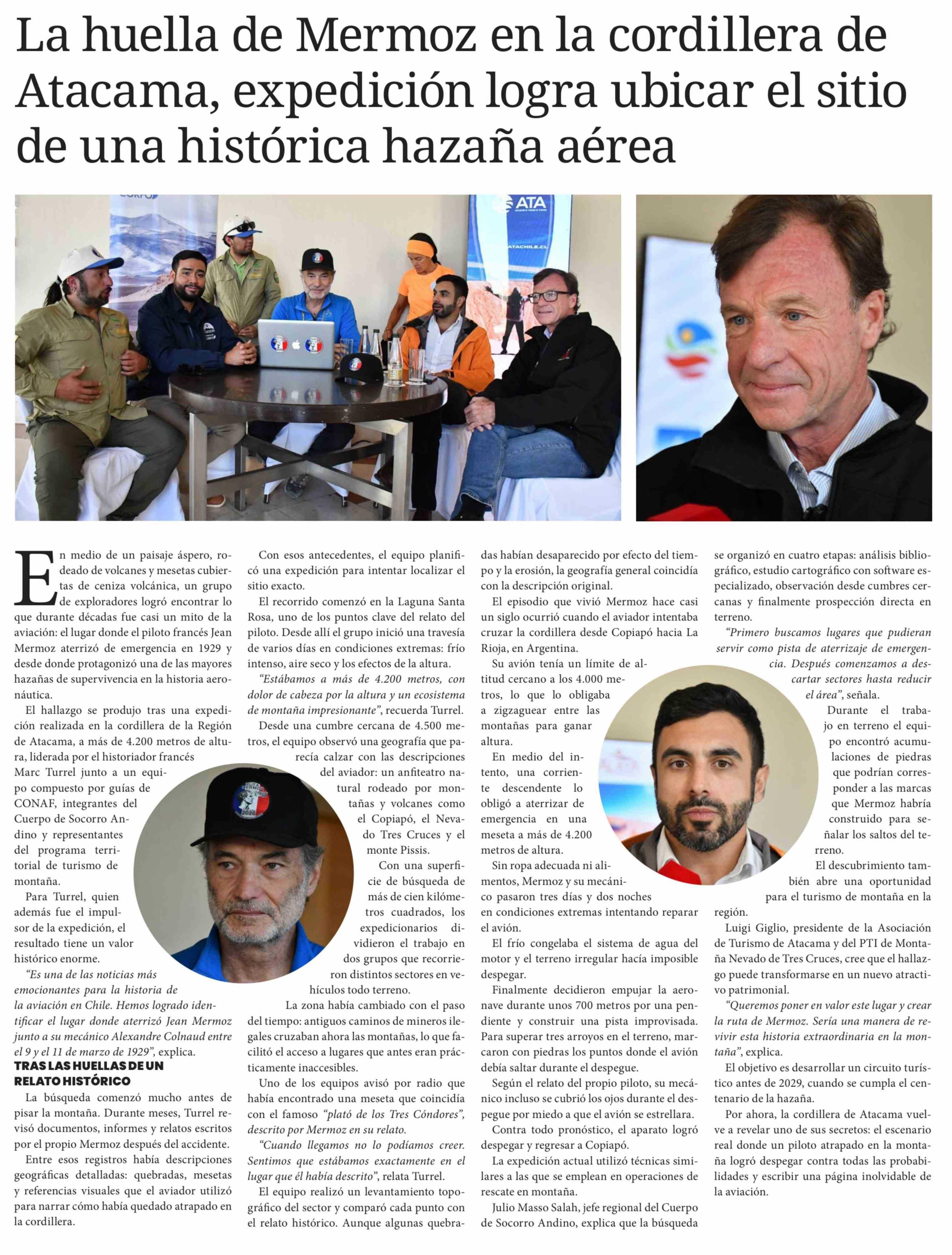 La huella de Mermoz en la cordillera de Atacama, expedición logra ubicar el sitio de una histórica hazaña aérea