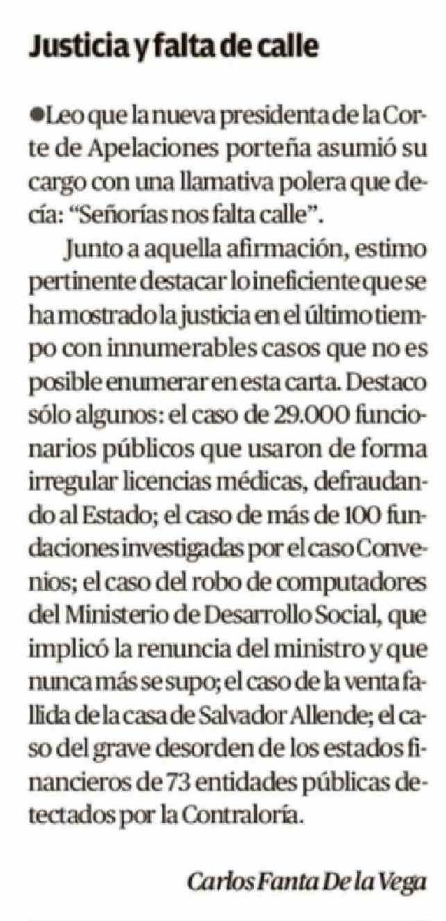 Cartas: Justicia y falta de calle