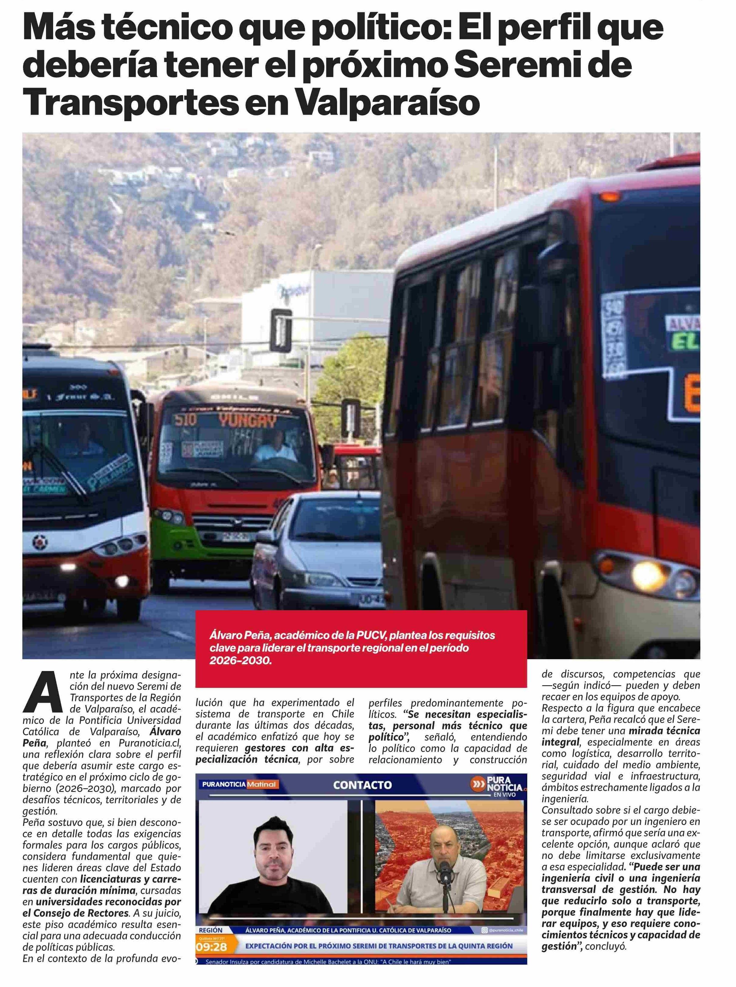 Título: Más técnico que político: El perfil que debería tener el próximo Seremi de Transportes en Valparaíso
