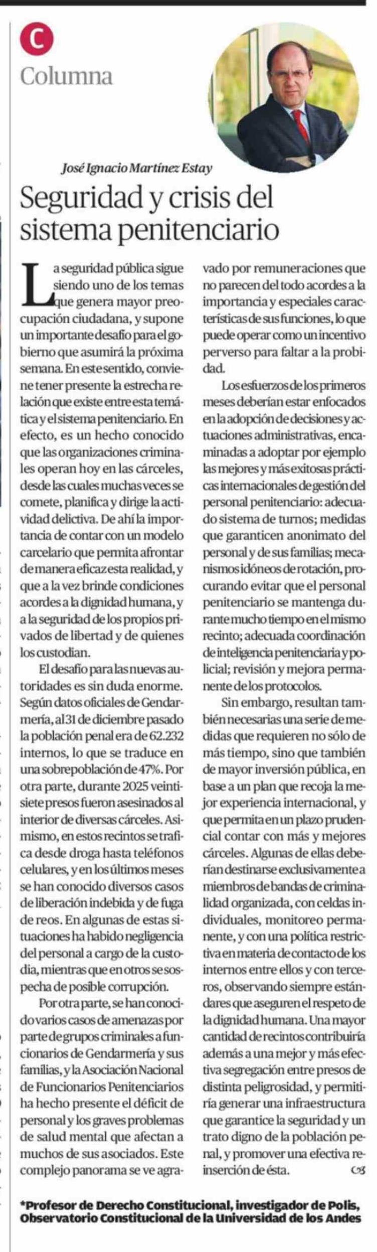 Columnas de Opinión: Seguridad y crisis del sistema penitenciario