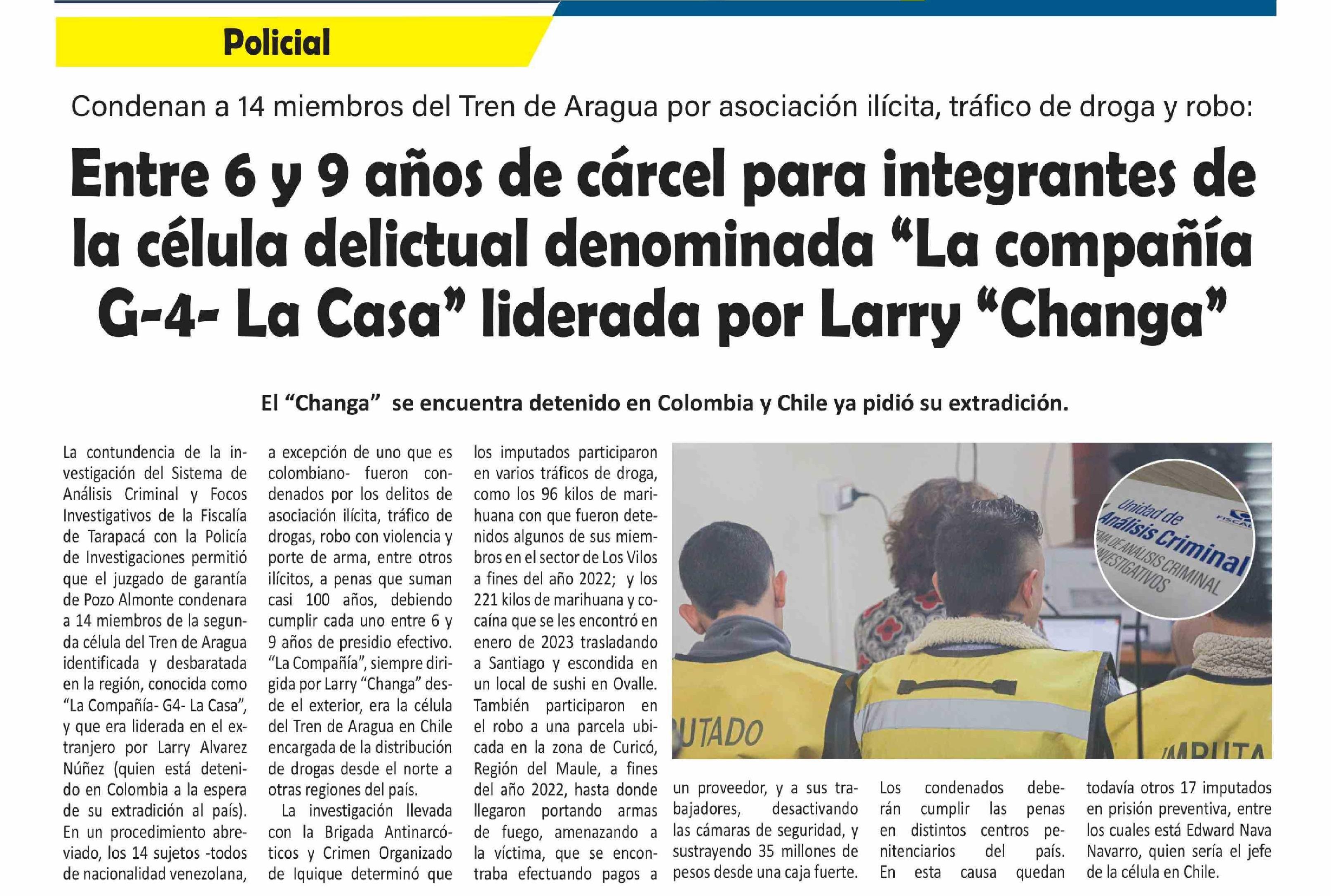 Condenan a 14 miembros del Tren de Aragua por asociación ilícita, tráfico de droga y robo: