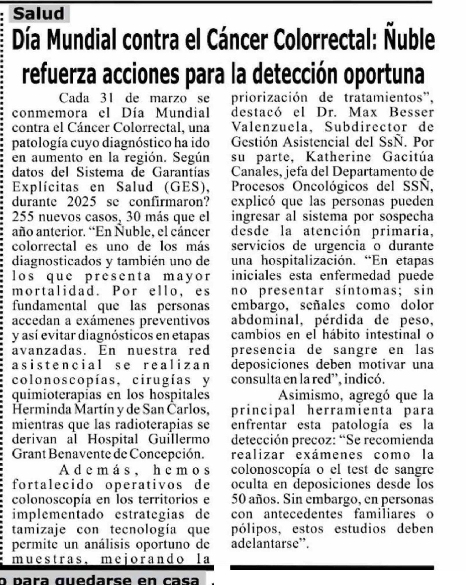Dia Mundial contra el Cancer Colorrectal: Nuble refuerza acciones para la detección oportuna