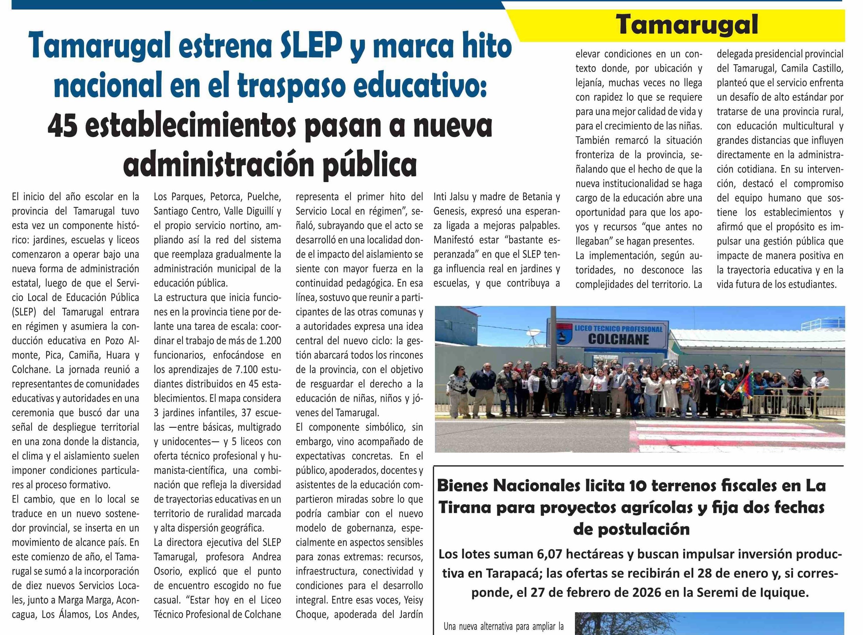 Tamarugal estrena SLEP y marca hito nacional en el traspaso educativo: 45 establecimientos pasan a nueva administración pública