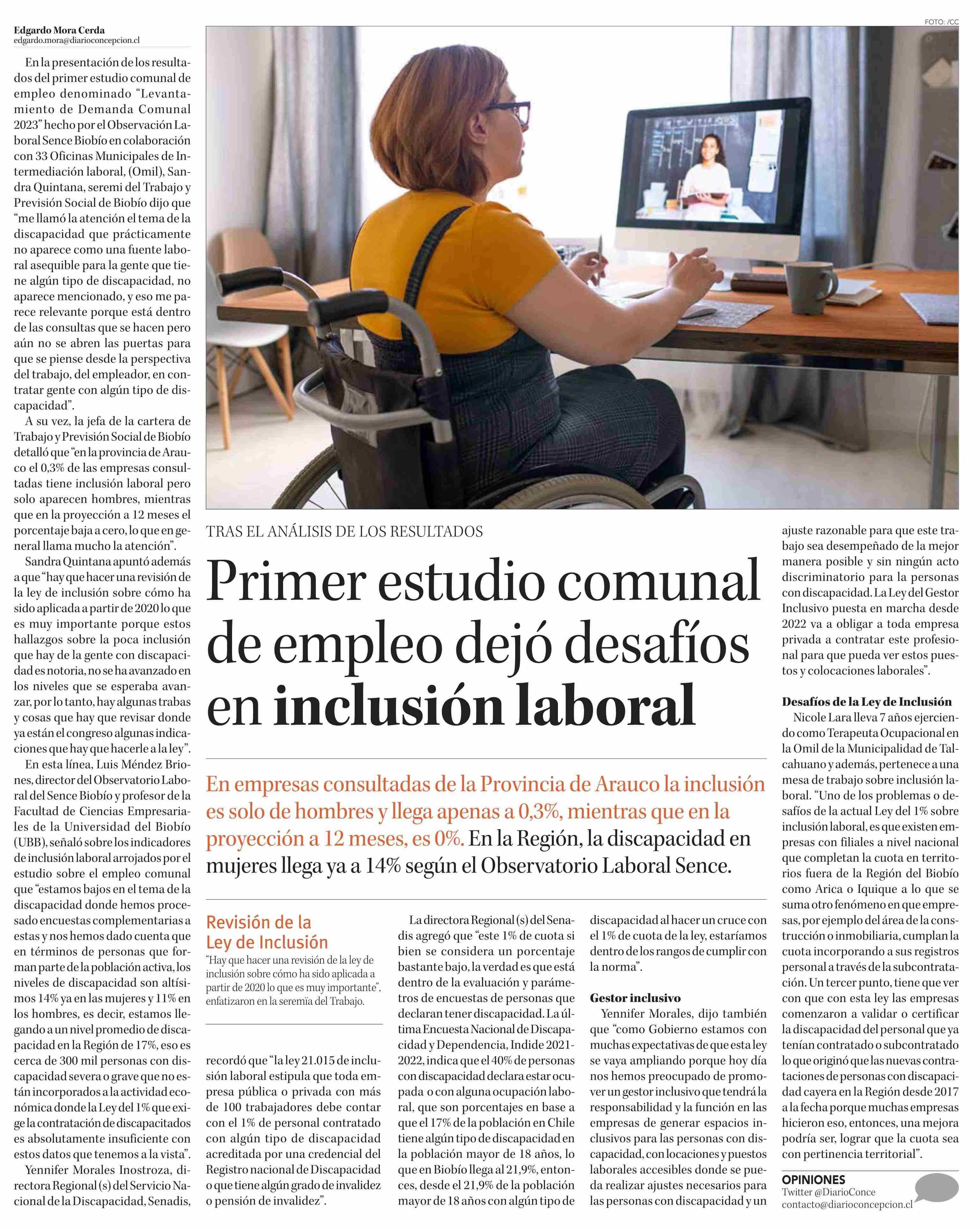 Primer estudio comunal de empleo dejó desafíos en inclusión laboral