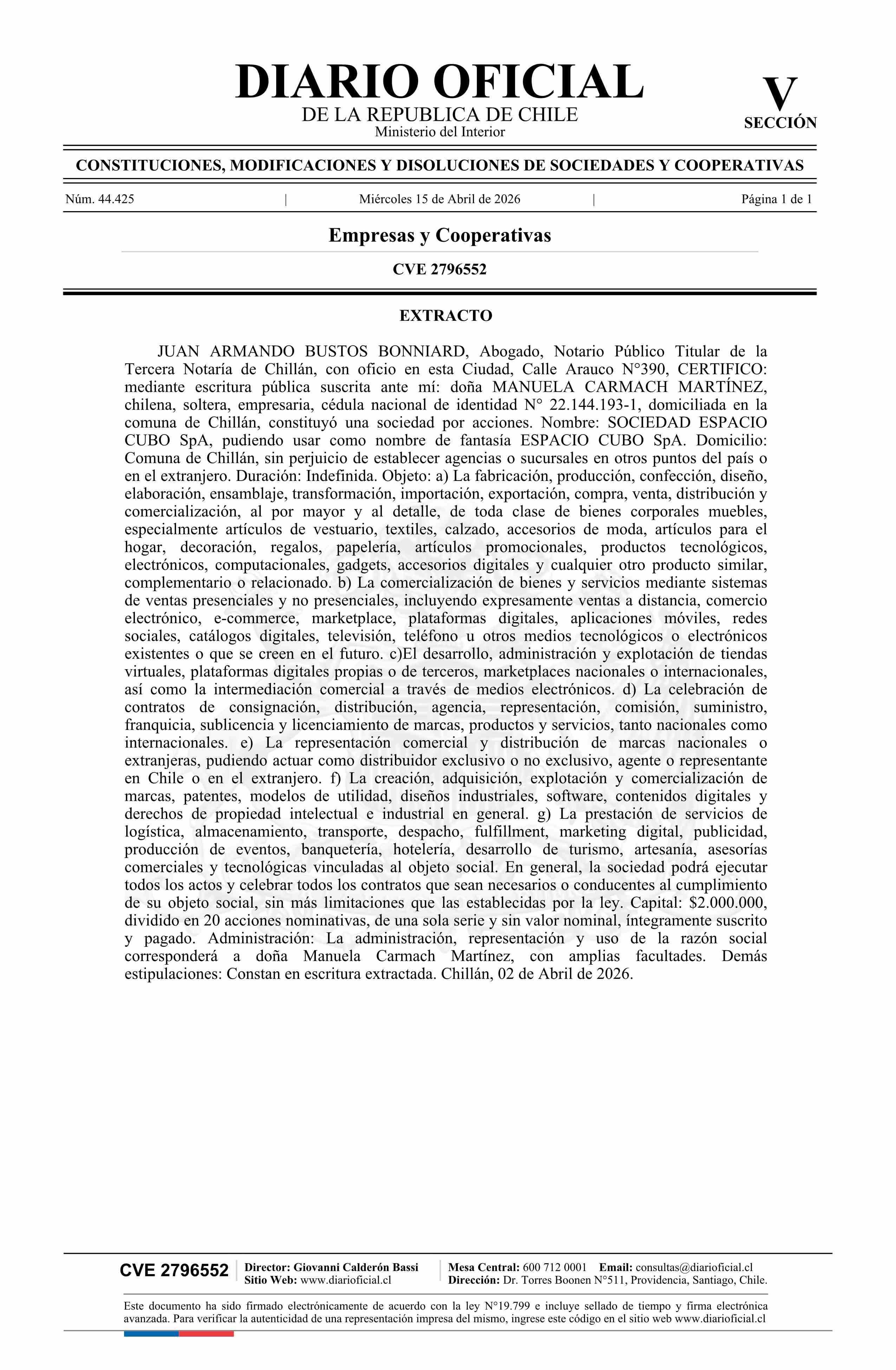 SOCIEDAD ESPACIO CUBO SpA