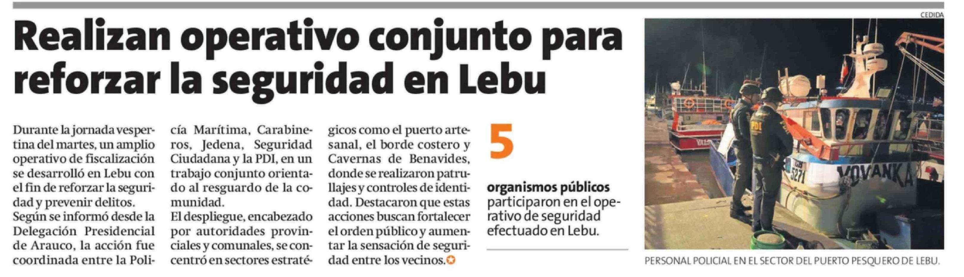 Realizan operativo conjunto para reforzar la seguridad en Lebu