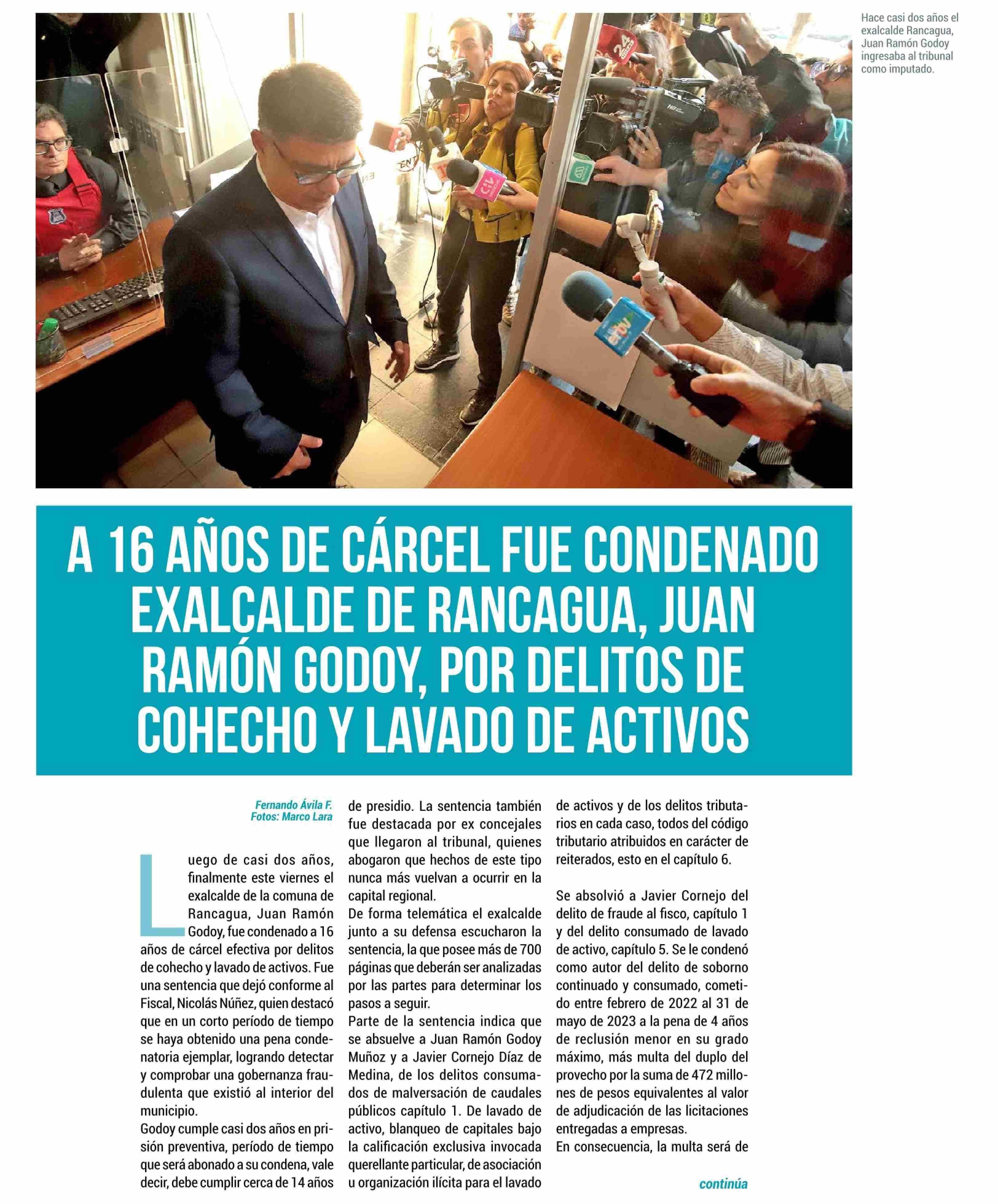 Título: A 16 ANOS DE CARCEL FUE CONDENADO EXALCALDE DE RANCAGUA, JUAN RAMÓN GODOY, POR DELITOS DE COHECHO Y LAVADO DE ACTIVOS