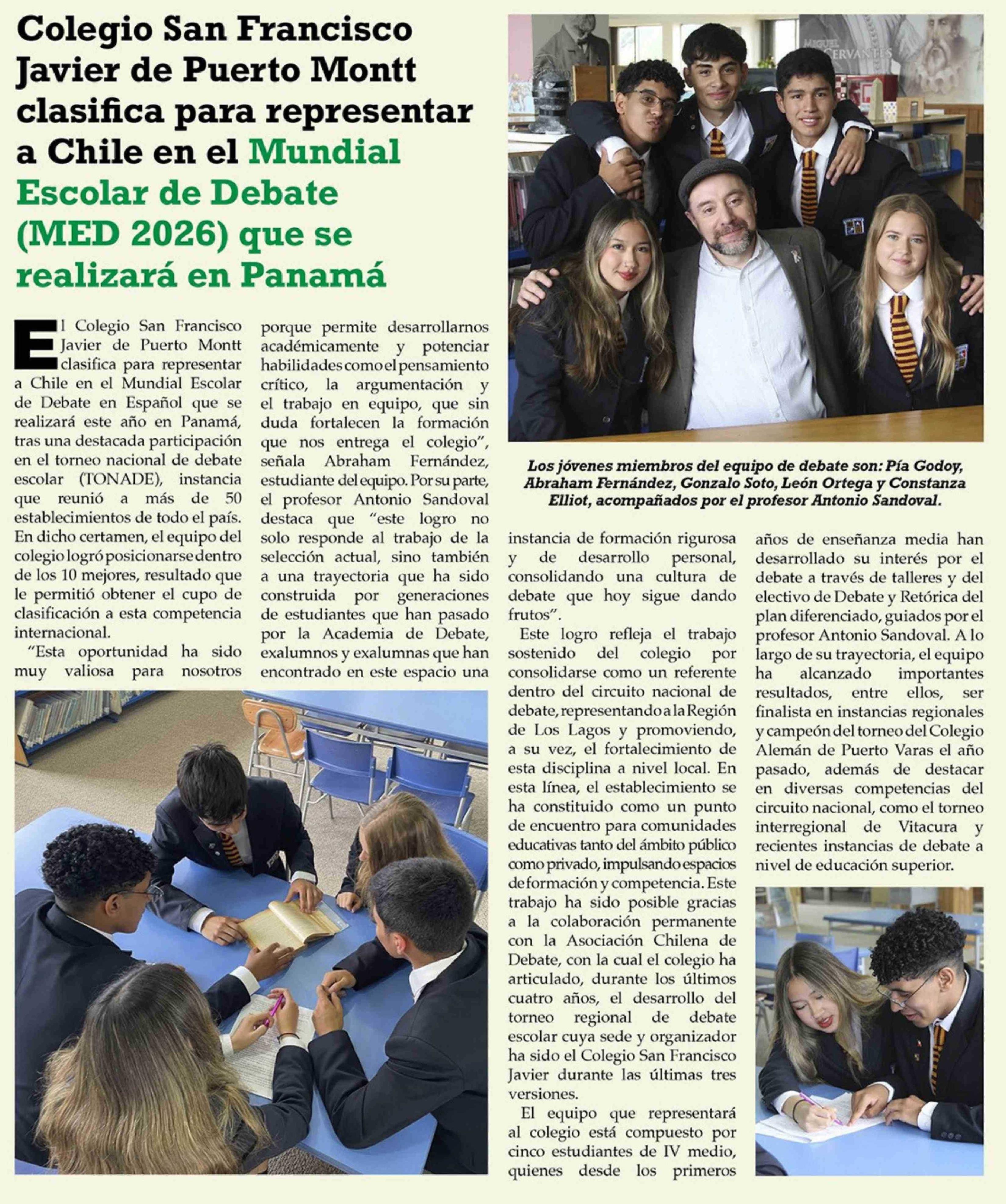 | Título: | Colegio San Francisco Javier de Puerto Montt clasifica para representar a Chile en el Mundial Escolar de Debate (MED 2026) que se realizará en Panamá |